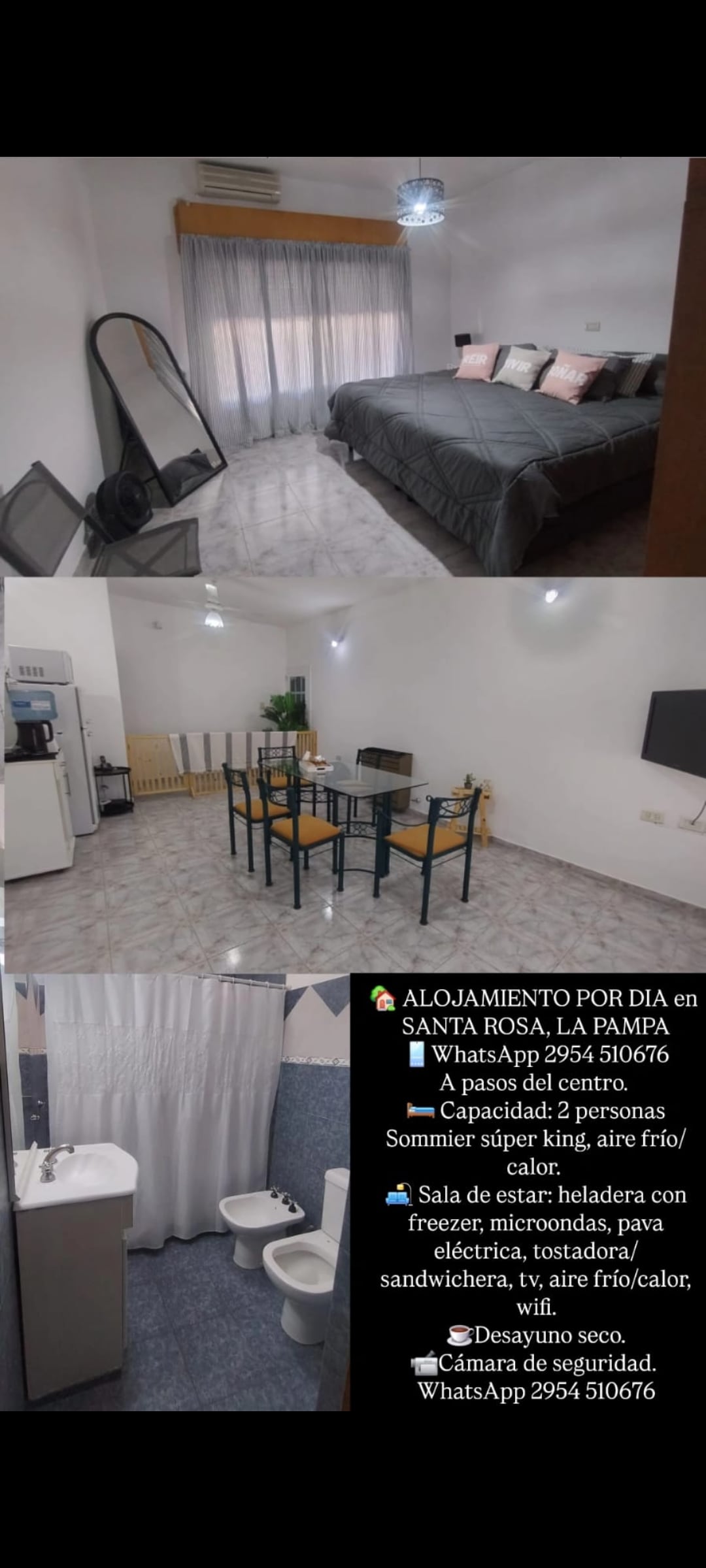 Árasán 📍 nua - aimseartha i gcroílár Santa Rosa, atá oiriúnach don obair nó don chuid eile. Tá 1 sheomra leapa, seomra suí ina bhfuil teilifís, cistin feistithe agus balcóin ann. Tá Wi-Fi saor in aisce (snáithín optúil), línéadach, tuáillí, seampú, uachtar agus gallúnach san áireamh. In aice le caiféanna, ollmhargaí agus cógaslanna. Aire pearsantaithe agus glanacht lonrach. Bí ar do shuaimhneas!