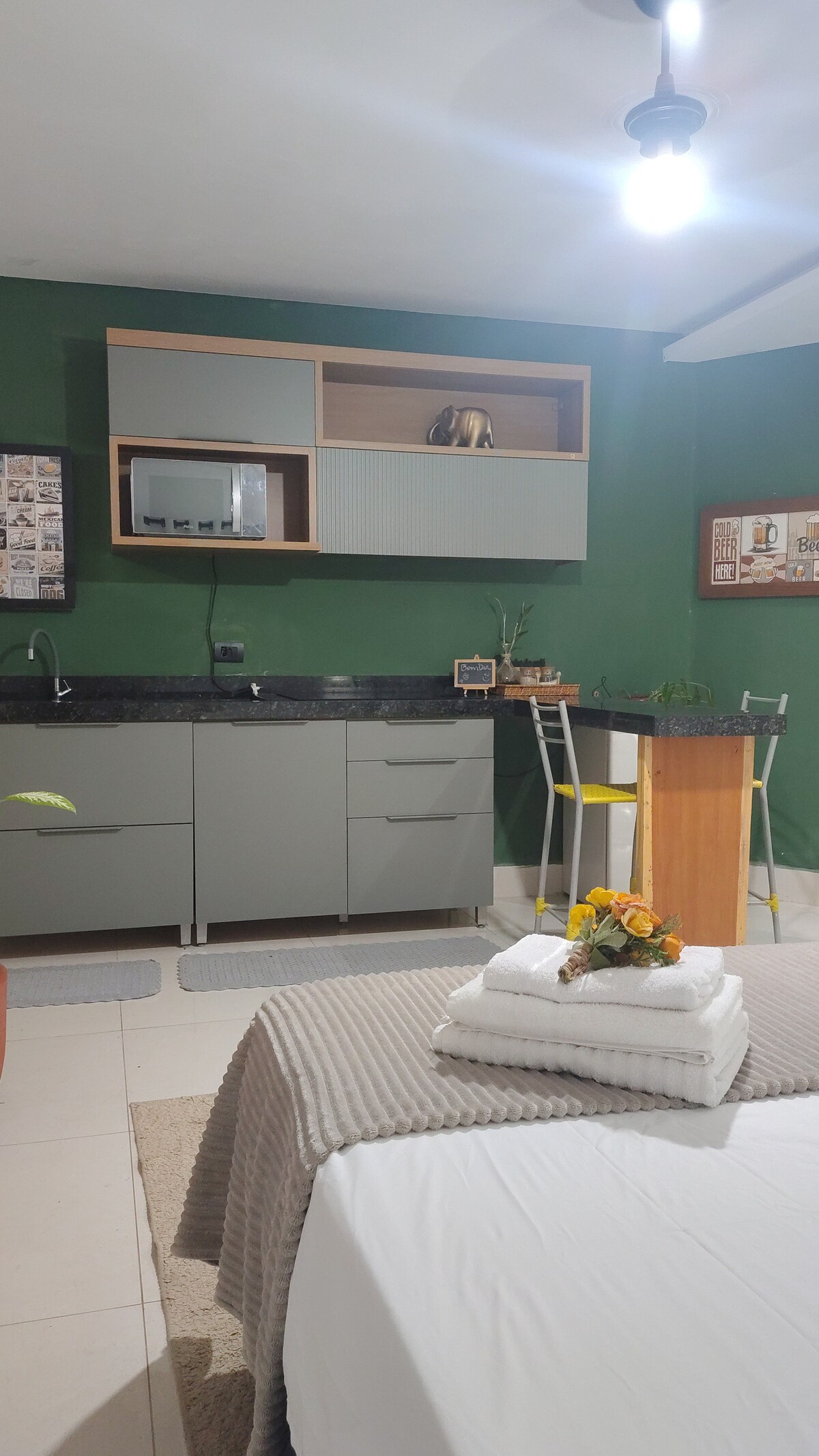 18km ó Presidente Prudente agus thart ar 10min tiomáint ón aerfort, tá ár spás suite i lár chathair Pirapozinho.Property le bealach isteach neamhspleách agus trí bhloc ón trádáil Tá na nithe seo a leanas ar fáil san áit seo: Wi - Fi, bord oibre, seomra suí ina bhfuil tolg agus teilifís, seomra folctha, seomra leapa fairsing amháin ina bhfuil aerchóiriú, tá leaba dhúbailte, leaba bhuinc agus cúntóir ann. Ina theannta sin, tá an chistin feistithe le roinnt uirlisí, bord, cuisneoir agus micreathonnán.