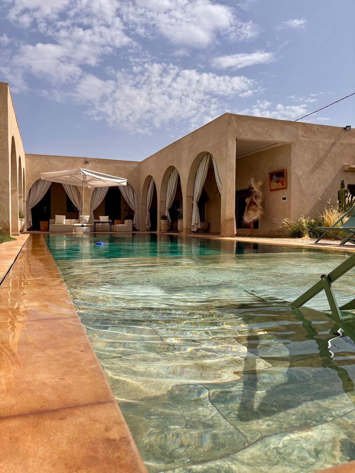 Éalaigh go Riad The Source, tearmann suaimhneach atá oiriúnach do theaghlaigh díreach taobh amuigh de Marrakech. Le 3 sheomra leapa cluthara, seomra spraíúil do pháistí atá lán le bréagáin, gairdín príobháideach méith, agus cabane draíochta ina bhfuil sleamhnáin isteach i do linn snámha phríobháideach, tá sé deartha le cuimhní cinn nach ndéanfaidh tú dearmad orthu go deo. Bain sult as radhairc iontacha ar Shléibhte Atlas, timpeallacht shuaimhneach agus draíocht Mharacó. Foirfe do theaghlaigh nó do lánúineacha atá ag lorg compoird agus stíle. Bricfeasta san áireamh. Aistriú aerfoirt ar fáil. Linn snámha théite ó mhí na Samhna go mí an Mhárta ar éileamh