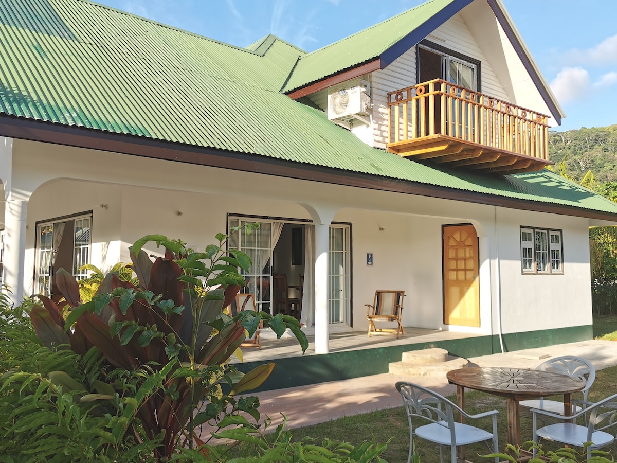 Sampla meallacach agus foirfe de creole Seychellois Teach nua - aimseartha. Tá na saoráidí go léir a theastaíonn le haghaidh fanacht compordach ar La Digue in árasán simplí Semi Scoite timpeallaithe ag bláthanna. Ideal do dhá lánúin agus teaghlaigh, tá an tÁrasán comhdhéanta de : *Dhá sheomra leapa aerchóirithe le Leaba Dhúbailte amháin an ceann * Cistin mhór lánfheistithe * Seomra Maireachtála Móra le teilifís *Veranda. * Níl aon Meaisín Níocháin sa teach, ach is féidir linn do níochán a dhéanamh ag Táille.