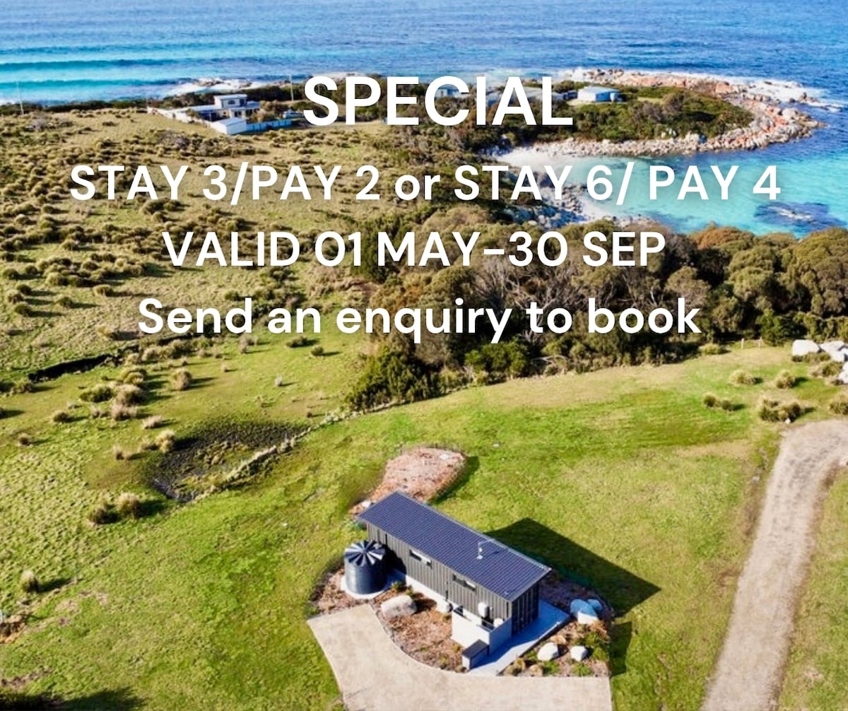Tearmann tosaigh fíor - aigéin i ngráig chiúin. Ar an clifftop leis an aigéan ag do dhoras, le radhairc áille ar an murlach agus ó thuaidh go St. Helens. Sos surfála chun tosaigh agus an murlach le haghaidh cadhcála agus iascaireachta. Rochtain mhaith ar Pháirceanna Náisiúnta Freycinet agus Douglas Apsley, agus Bá na dTinte.