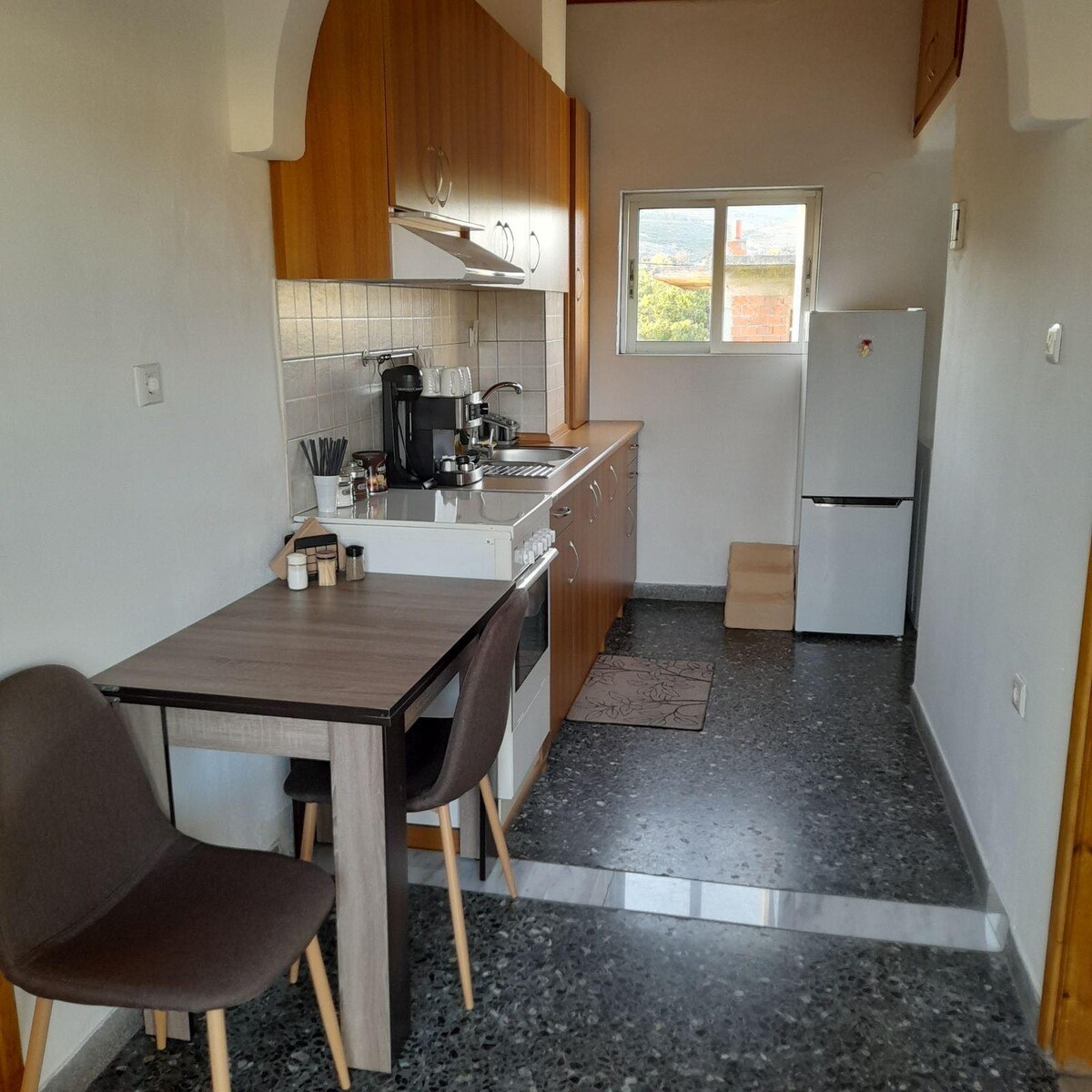 Árasán nua - aimseartha i lár Alexandroupolis atá feistithe go hiomlán le gach saoráid nua - aimseartha le haghaidh fanacht compordach de 2 dhuine. Tá a shuíomh oiriúnach chun rochtain a fháil ar an ionad agus ar an bpromanáid le siúlóid. Laistigh de 100m tá rochtain ar ollmhargaí, cógaslanna, stáisiún gáis, mearbhia, patisserie, srl. Tá stad bus na cathrach 50m ar shiúl. Tá an t - achar go dtí an t - aerfort 4km, ón gcalafort ag 500m agus ó KTEL ag 300m.