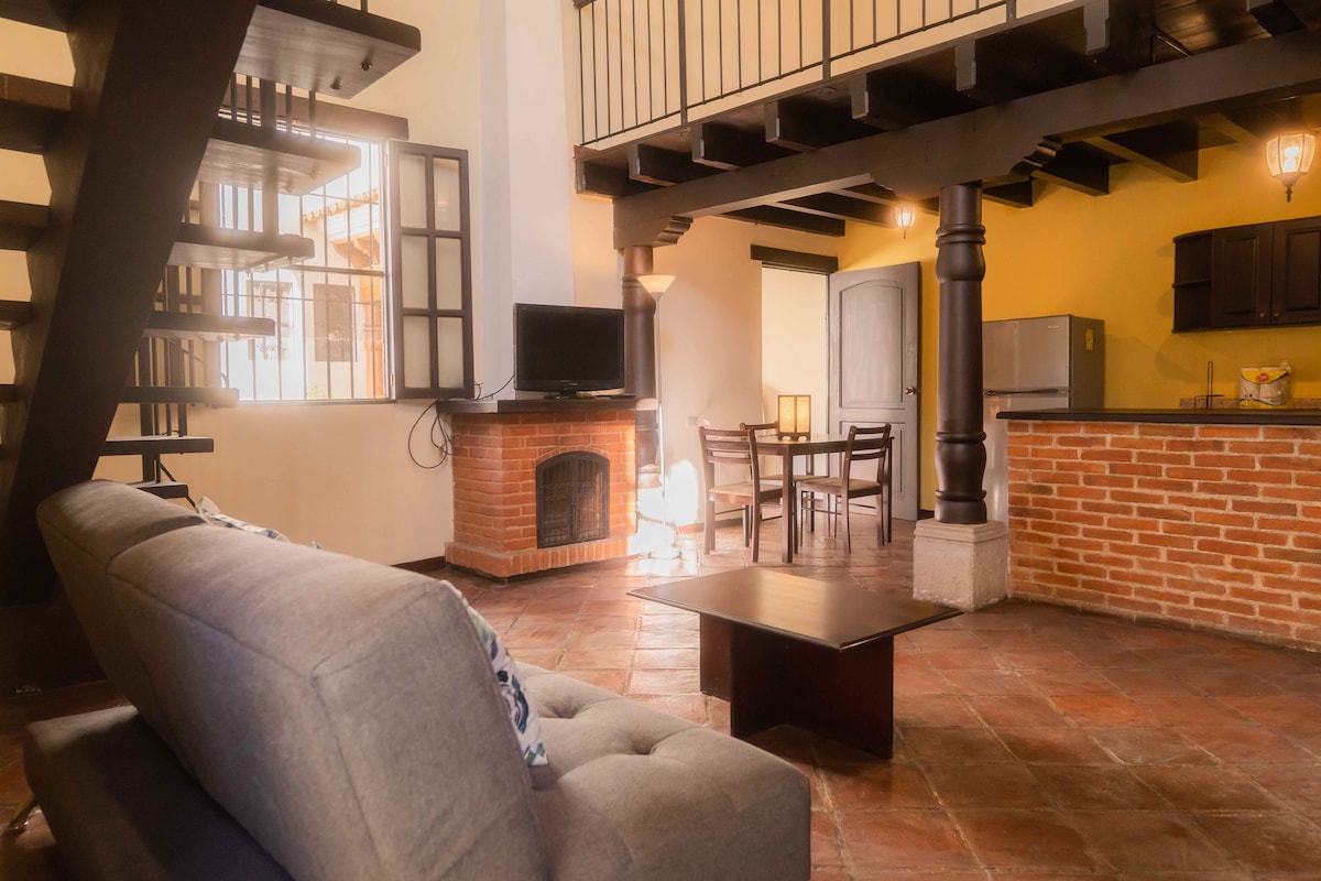 Tá an áit speisialta seo os comhair Óstán Museo Santo Domingo, timpeallaithe ag bácúis bhlasta, bialanna, caiféanna, dánlanna ealaíne, siopaí áise, fothracha, spá agus músaeim. Achar siúil go Central Park ionas gur féidir leat taitneamh a bhaint as do shiúlóid. Is féidir leat fothracha iontacha Convent, Acatenango agus Fire Volcanos a sheiceáil ónár bhfuinneog itheacháin. WI - FI láidir le haghaidh glaonna/físchomhdháil ar fáil. Leaba bhanríona móide dhá leaba thoilg. Páirceáil do charr amháin, bailiú/fágáil aerfoirt ar iarratas.