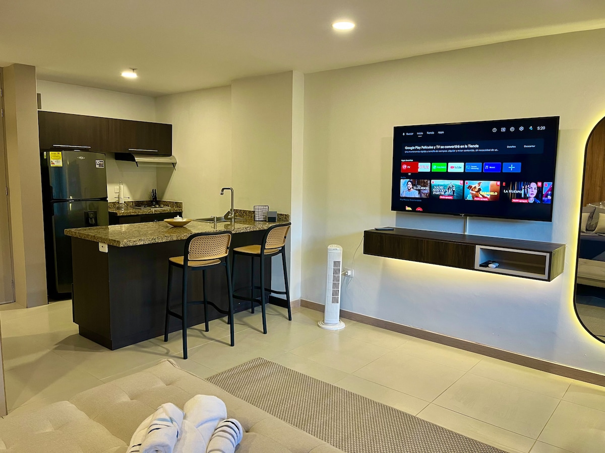 Aimsigh tearmann boihéamach in Laureles - dearadh bithphiliciúil le ballaí glasa agus soilse teo a chruthaíonn atmaisféar teolaí. Bain sult as saoráidí 5★: 100% línéadach tí cadáis, piliúir cúr cuimhne, aerchóiriú, balcóin le radharc, stáisiún caife, trealamh gastranómach (salann, ola olóige, milseoir); saoráidí (tuáillí, gallúnach, seampú, feabhsaitheoir, cúntóir Alexa. Féinseiceáil isteach 24/7, páirceáil, Wi - Fi an - tapa, agus limistéar teilea - oibre eirgeanamaíochta 3 bhloc ó Pháirc Laureles. Déan áirithint anois!