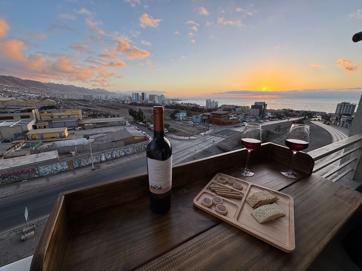 Bain sult as suaimhneas an árasáin an - lárnach seo in Antofagasta. Bain sult as radharcra áille lánléargais ar an aigéan ó do dhá lochtán, gar don ionad siopadóireachta, clinic MEDS, ollmhargadh Líder Express, caifé, Bialann Beáir, críochfort bus agus ospidéal réigiúnach. Tá cistin lánfheistithe, Teilifís Chliste, WIFI, glas digiteach agus gach rud a theastaíonn uait le haghaidh fanacht taitneamhach ag an Roinn. Cuir in áirithe anois é, bain sult as promóisin agus bíodh eispéireas nach ndéanfar dearmad air choíche agat...!