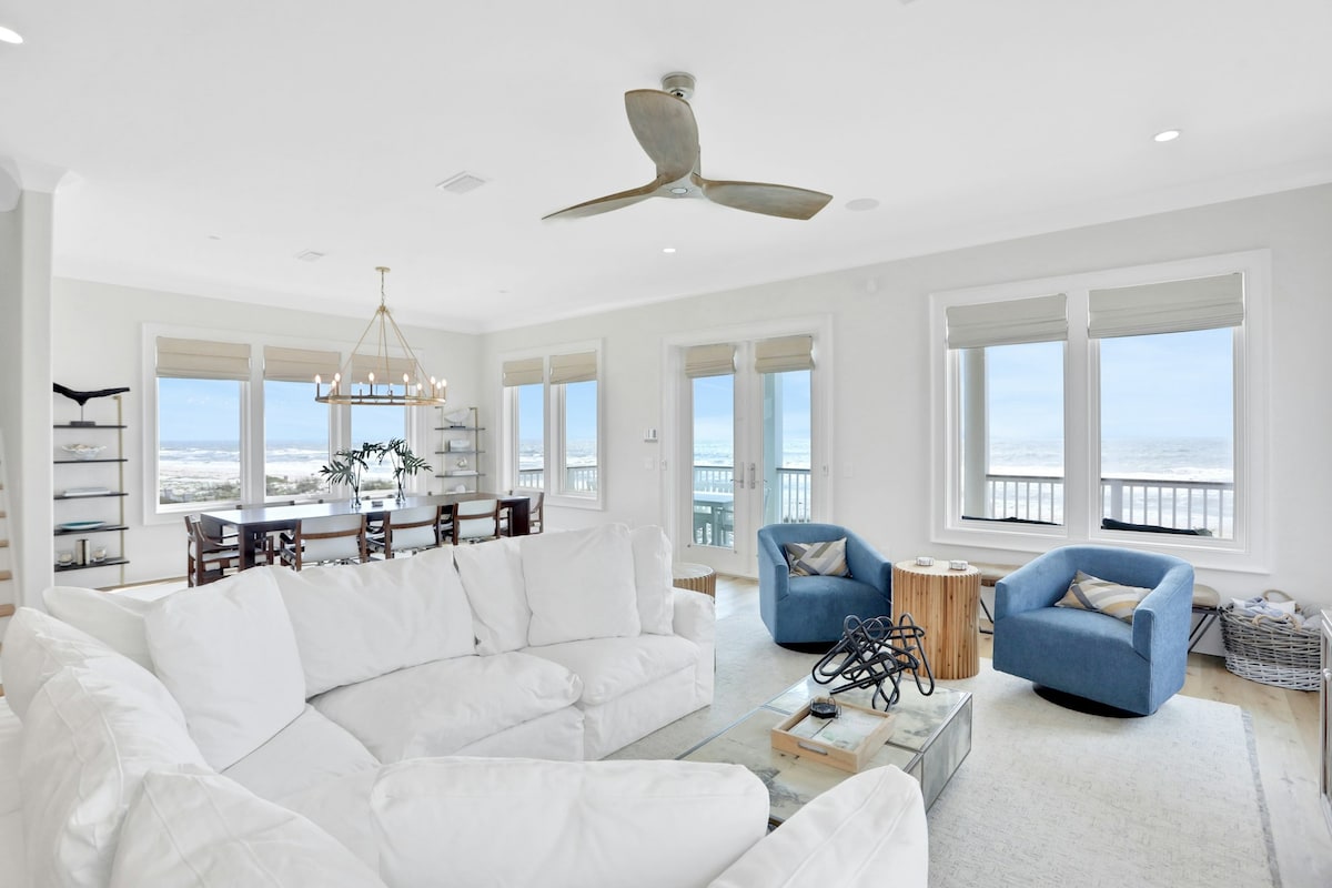 5BR Beachfront home w/Gulf views, pool, tennis, AC