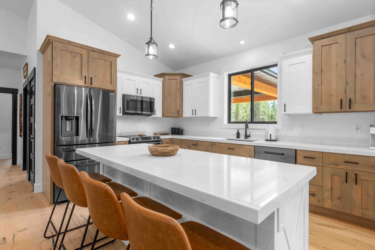 Ionad bunáite galánta 2 sheomra leapa nach bhfuil ach 10 nóiméad ó Pháirc Náisiúnta Glacier! Tá an tearmann cluthar tuaithe seo, atá foirfe do lánúineacha nó do theaghlaigh bheaga, feistithe le cistin iomlán, sorn tinteáin agus bealach isteach príobháideach. Níl ach 1 mhíle go dtí saoráidí an bhaile, rud a chuireann le háisiúlacht. Tabhair faoi deara: Tá sé in aice le beár, mar sin d'fhéadfadh go mbeadh roinnt torainn ann. Déan iniúchadh ar ár bpróifíl le haghaidh tuilleadh tréimhsí fanachta 5 réalta! Cuir ceist faoin bhfoirgneamh go léir a chur in áirithe! (spás codlata do suas le 15 dhuine)