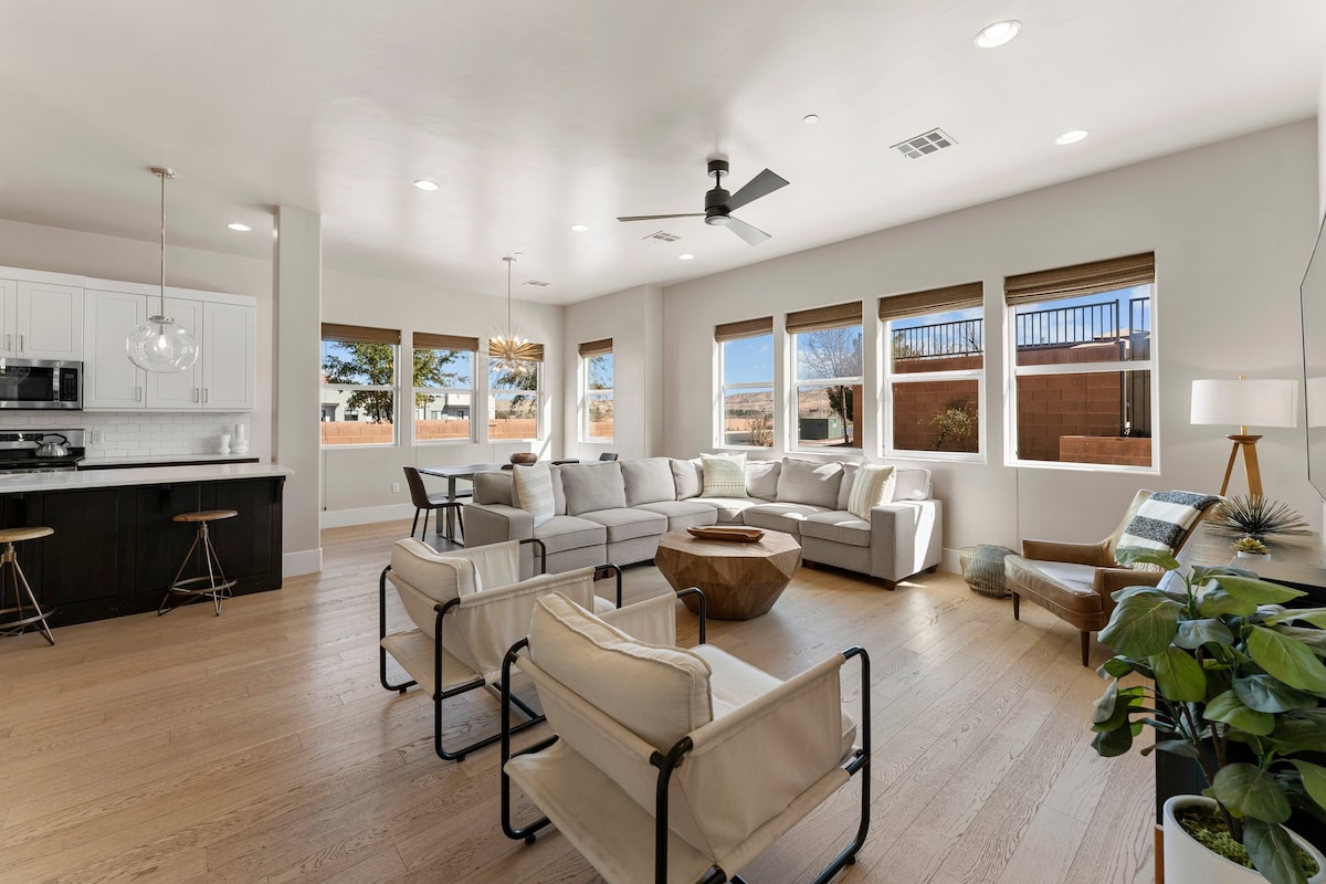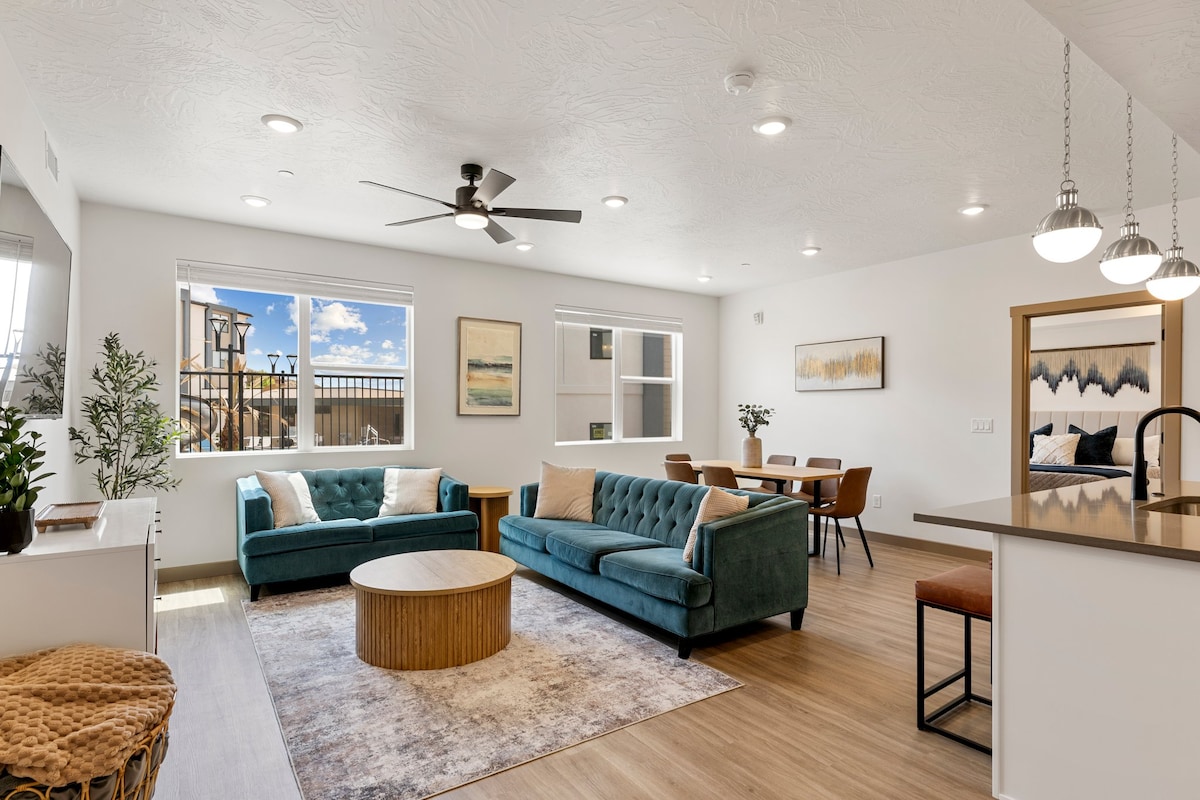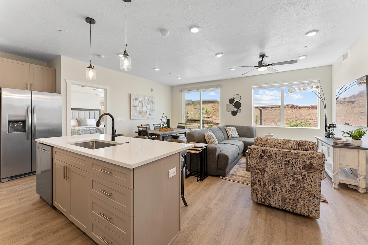 Táimid ag glacadh bearta breise chun réadmhaoine a dhíghalrú idir tréimhsí fanachta. Tabharfar cód dorais duit, Ag Ceadú Féinseiceáil isteach! 3 Seomra Leapa/2 Seomra Folctha Condo Upscale. Suite ar imeall Naomh Seoirse i Coral Canyon. I measc na saoráidí atá san áireamh tá linn snámha laistigh agus lasmuigh, tobán te, cúirt chispheile, cúirt leadóige, limistéar picnice de réir linne, clubtheach, agus galfchúrsa in aice láimhe. WI - FI SAOR in aisce