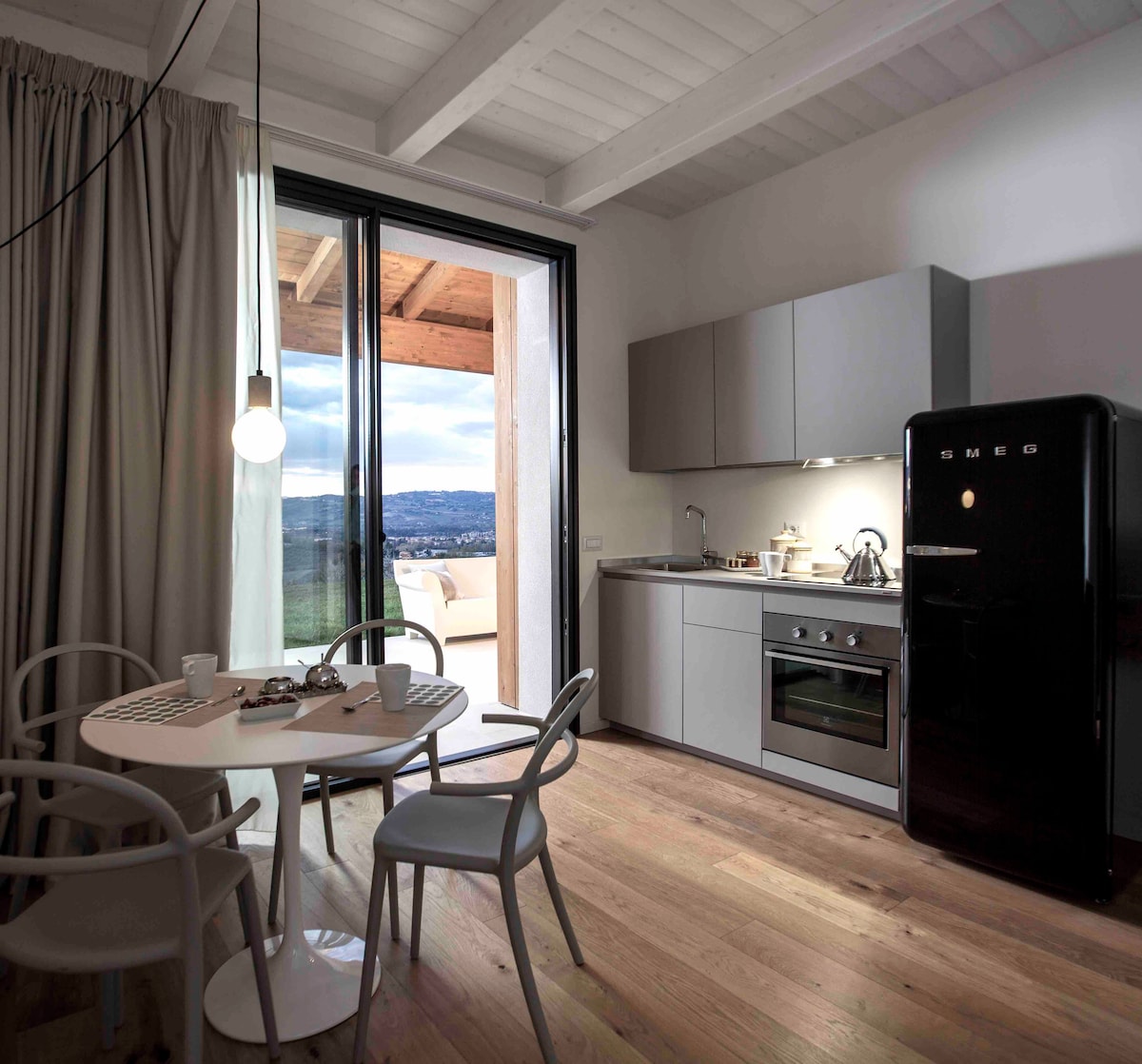 PentSea – Penthouse le Radharc na Mara Néal, an tagairt is fearr do shó na hIodáile. Tá an Super Loft 140 méadar cearnach seo, atá suite san fhoirgneamh is lárnaí in Fano, deartha go sonrach do theaghlaigh agus do ghrúpaí suas le 10 nduine. Suite go díreach ar imeall na farraige in áit lárnach den scoth, tugann sé radharc iontach 360 céim ar an Muir Aidriad. Agus é ar an gcaighdeán is airde leis an gcuid is fearr de Made san Iodáil, is fíorsheoid cois farraige é dóibh siúd a éilíonn an compord agus an galántacht is mó.