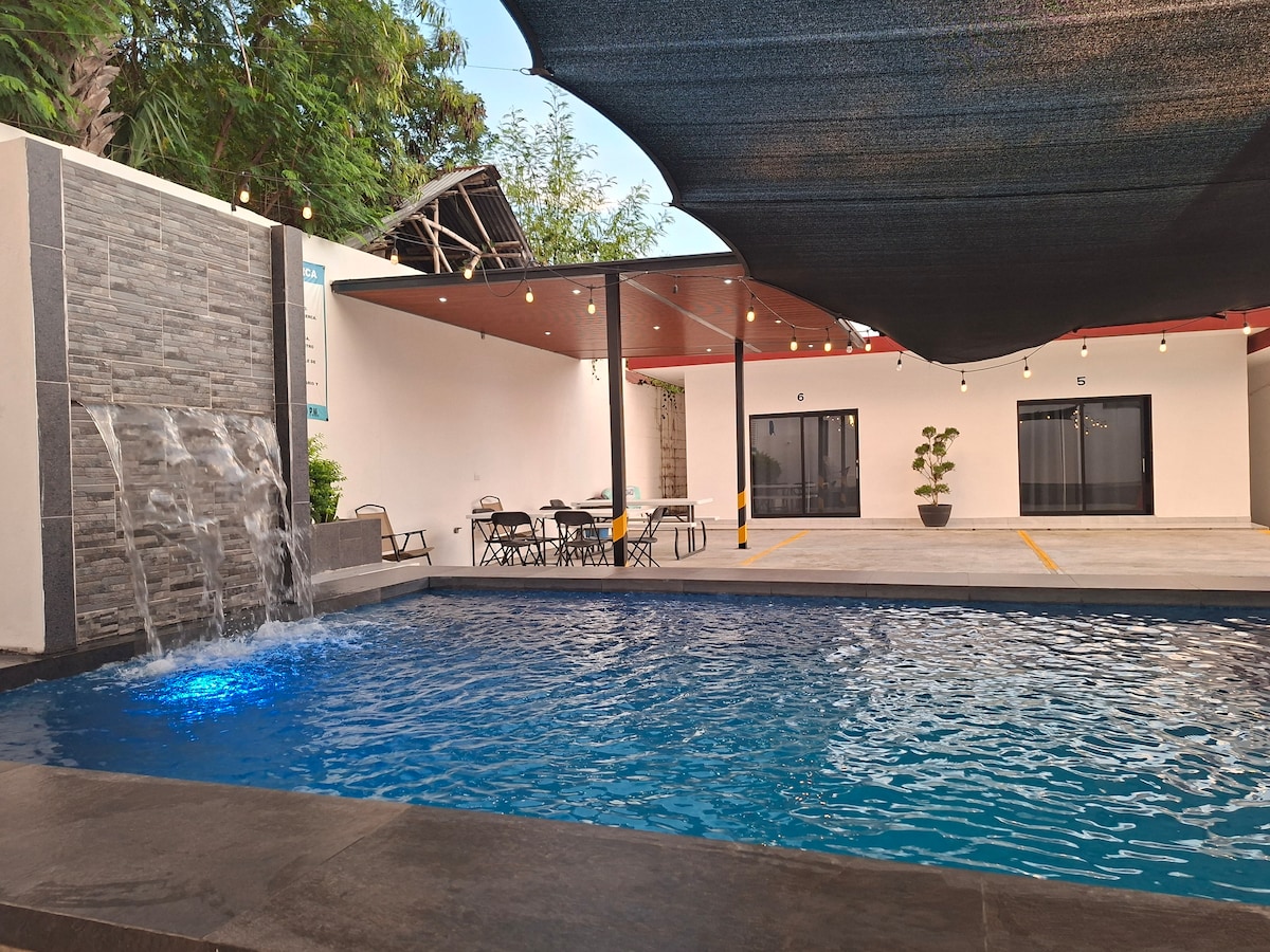 Seomra scíthe le linn snámha. Eispéireas La Huasteca