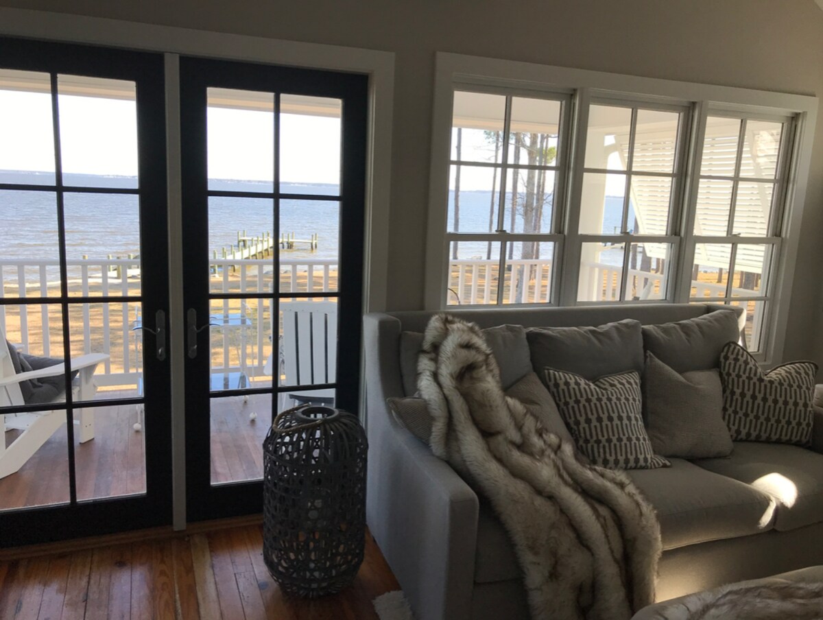 Scaoil ag an tearmann síochánta seo i gContae Pamlico, foirfe do dheireadh seachtaine suaimhneach iascaireachta, bádóireachta, seilge éanlaithe uisce, agus go leor eile! Le rochtain dhíreach ar Abhainn na Bá ón rampa báid ar an láthair, níl san eachtra ach céimeanna ar shiúl. Neadaithe i gClós Campála Stonewall, tá radhairc iontacha agus éalú suaimhneach sa teach úrnua seo. An dteastaíonn níos mó spáis uait? Tá teach breise béal dorais ar fáil ar cíos freisin, rud a fhágann go bhfuil sé oiriúnach do ghrúpaí níos mó nó do theaghlaigh iomadúla. Tá cadhcanna san áireamh lena n - úsáid ag aíonna!
