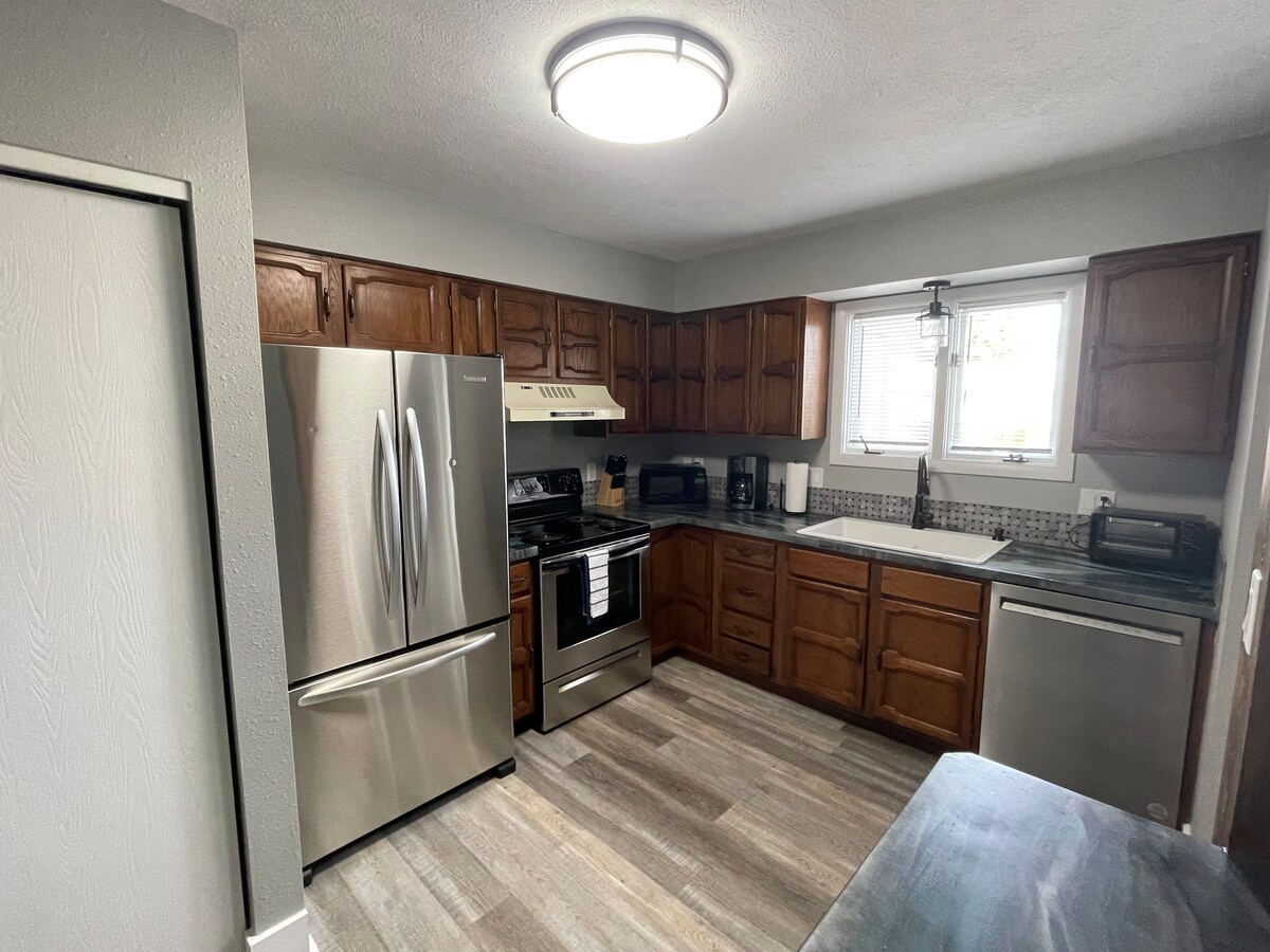 Ciceáil siar agus lig do scíth san áit a mbuaileann an nua - aimseartha leis an tír! Cuireann an Master Suite leaba de mhéid na Banríona, vardrús agus seomra folctha príobháideach ar fáil. Tá leaba agus vardrús lánmhéide ar fáil sa dara seomra leapa. Tá meaisín níocháin /triomadóir suite sa dara seomra folctha iomlán. Cuireann an chistin ghleoite dhubh agus bhán an spás foirfe i láthair chun béile blasta a chruthú! Lig do scíth sa seomra suí ar an tolg nó ar an bhfuton dé - athléimneach a d'fhéadfadh an tríú leaba a chruthú. Séidfidh balla na bhfuinneog thú leis an radharc! Tar isteach, bí mar aoi againn!