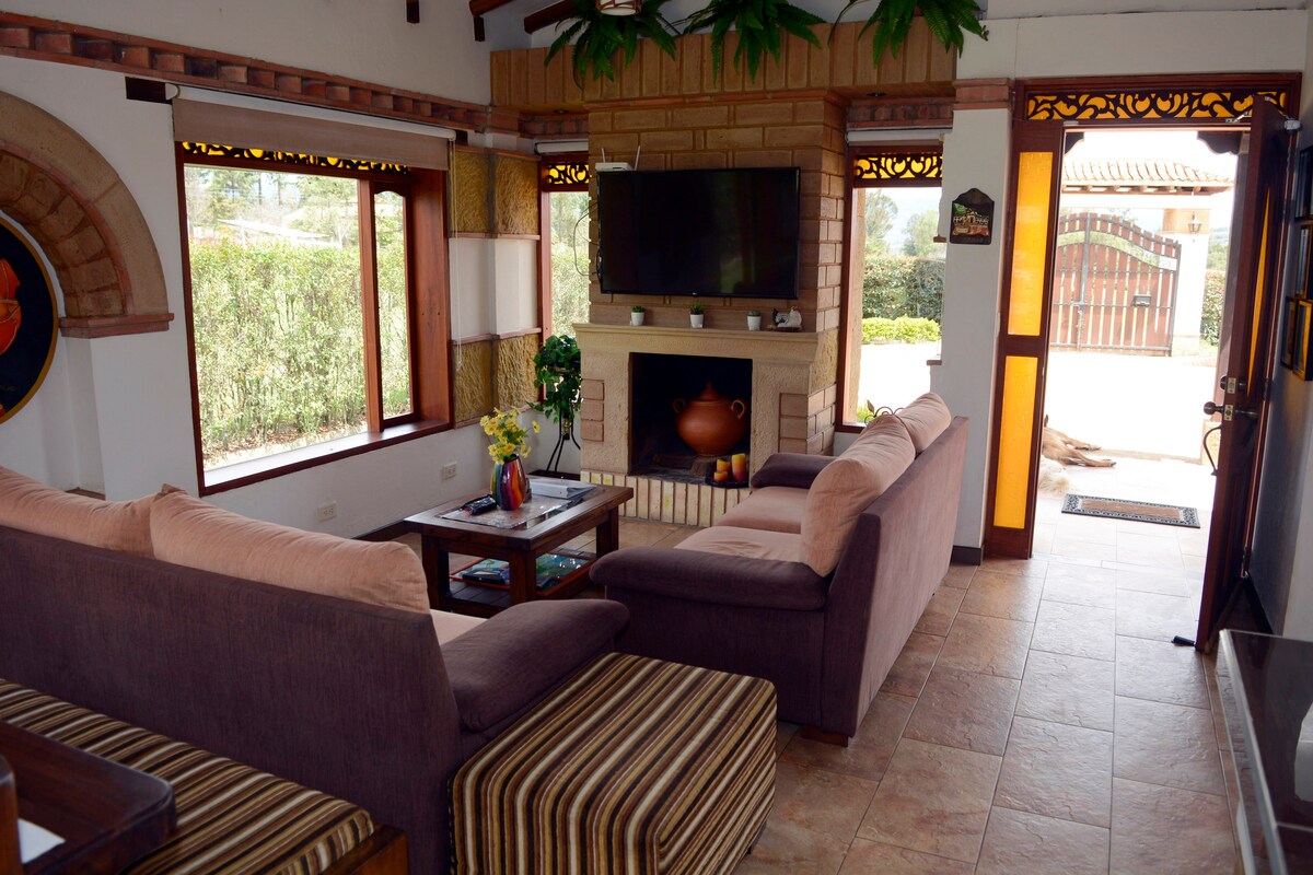 Tír álainn agus teach príobháideach, foirfe do theaghlaigh atá ag lorg scíthe, compoird agus dúlra; suite 10 nóiméad ó Villa de Leyva, i dtimpeallacht chiúin shábháilte. Tá seomra suí mór, teallach, cistin, seomra bia, seomraí leapa ina bhfuil fuinneoga móra a ligeann solas nádúrtha den scoth isteach agus a thugann radharc ar an ngairdín agus ar chnoc Iguaque sa teach. Tine champa, áit don mbeárbaiciú agus oigheann láibe, seomra lasmuigh, páirceáil phríobháideach; foirfe do bheárbaiciúnna, do shiúlóidí agus do chruinnithe ciúine teaghlaigh.