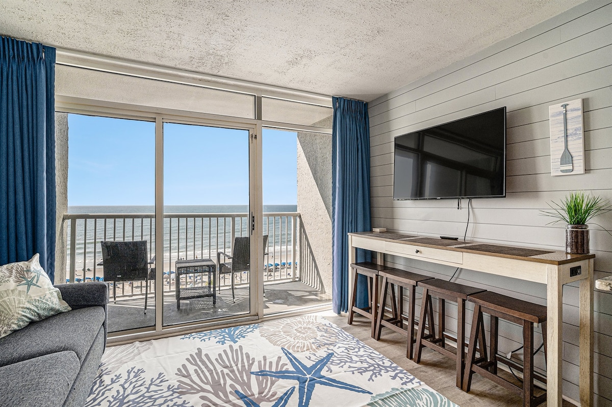 Árasán Príobháideach Álainn King Ocean Front! Foirfe do Shaoire Saoire ar an Trá do Lánúin! Lonnaithe ar an 14ú hurlár, Balcóin phríobháideach, agus go díreach ar an trá ag SeaWatch Resort. All Remodeled Direct OceanFront Private Condo 🏖Céimeanna ar shiúl ón trá! - PÁIRCEÁIL SAOR in aisce ar infhaighteacht w/ EV - Rochtain ar GACH Linn Saoire/Jacuzzis -2 Cathaoireacha Trá san áireamh! Leaba Mhéid an Rí - Teallach Leictreach Teilifís Chliste Mhór Wi - Fi saor in aisce - Cistin taobh istigh den Árasán - Giomnáisiam ar an láthair Nóiméad ar shiúl chuig siopadóireacht agus bialanna!