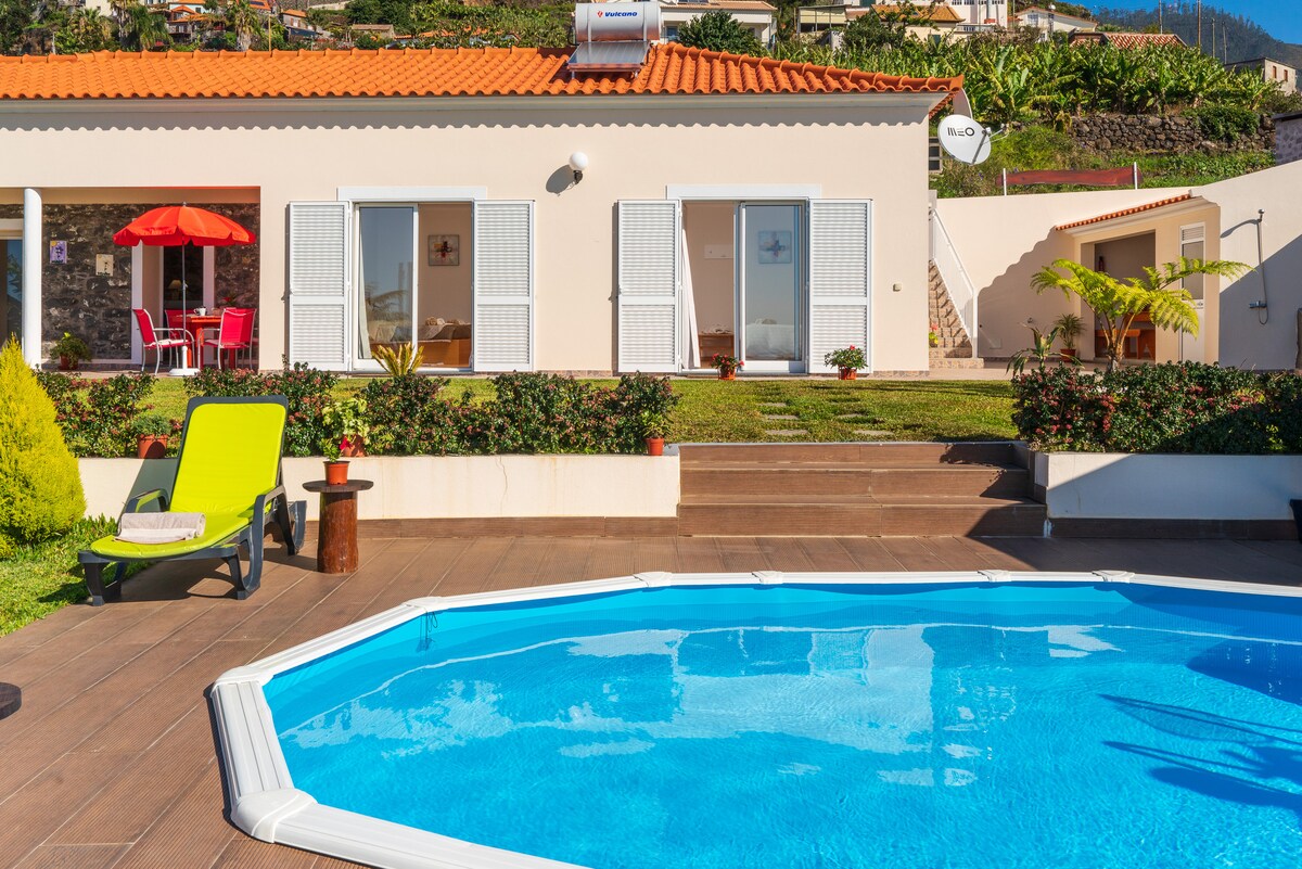 Villa nua-aimseartha 3 sheomra leapa in Arco da Calheta grianmhar le radhairc ar an bhfarraige agus ar na sléibhte. Bain sult as linn snámha phríobháideach théite, lochtán beárbaiciú, Wi-Fi tapa, agus garáiste slán. Siúil chuig bialanna agus caiféanna, 10 nóiméad sa charr go Trá Calheta agus 30 nóiméad go Funchal. Foirfe do lánúineacha, do theaghlaigh nó do ghrúpaí — an áit fhoirfe chun Maidéara a iniúchadh.