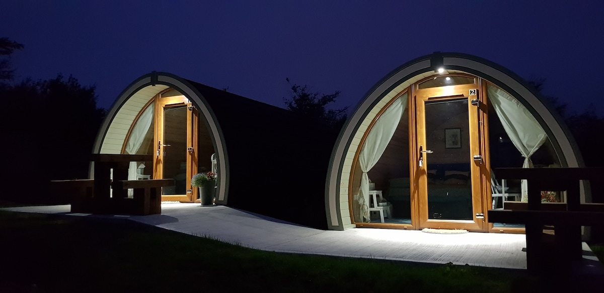 Cochall glampála fráma sómasach úrnua, suite i sráidbhaile tuaithe iontach in Iarthar Chorcaí ar a dtugtar Eyeries. Is feirm mairteola oibre muid agus is féidir linn aire a thabhairt do do rothair/do ghluaisrothair ar an láthair i dtimpeallacht shábháilte. Tá radhairc sléibhe iontacha ag na Pods agus dóibh siúd a bhaineann taitneamh as an dúlra agus a théann amach as an dallamullóg orthu ar feadh tamaill bhig, ansin tá sé seo duitse. Tá gach cochall cosúil le mionárasán beag. Tá cónaí orainn in aice leo, mar sin is féidir linn cabhrú le haon cheisteanna a d'fhéadfadh a bheith agat.
