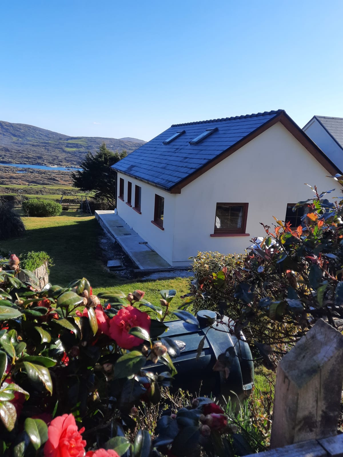 Suite álainn d'aíonna ar Shlí an Atlantaigh Fhiáin le radhairc iontacha ar an bhfarraige. Ag breathnú amach ar Chuan na Cúile agus atá suite 6.6km (tiomáint 10 nóiméad) ón sráidbhaile Eyeries. Tearmann iontach do dhaoine atá ag lorg sosa faoin tuath, agus a bheith fós ina suíomh den scoth chun iniúchadh a dhéanamh ar Leithinis Bhéarra. Áit fhoirfe le haghaidh siúlóide, fánaíocht agus iascaireacht, agus turais threoraithe sléibhe ar fáil ach iad a iarraidh. Oiriúnach do 2 -4 duine. Rochtain iomlán ar ghairdín fairsing agus ar láthair itheacháin / suíocháin faoin aer.