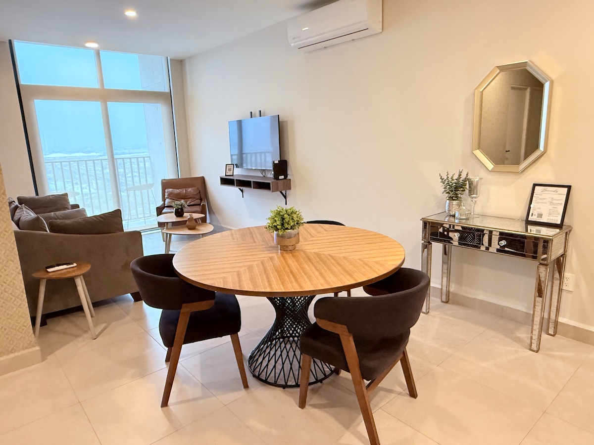 BILLEÁIL - Uisce 24/7 - 3 dhuine Fáilte go Puntacero! Táimid ag tnúth le tú a óstáil ag ceann de na Monterrey Airbnb is sómasaí atá againn. Árasán le bailchríoch eisceachtúil agus radharc ar an gcathaoir. Suíomh uathúil! Wi - Fi, Teilifís Chliste, aerchóiriú, 1 tarraiceán páirceála. Ideal d'fheidhmeannaigh, do theaghlaigh agus do thurasóirí. Slándáil 24/7, 3 ardaitheoir, SAORÁIDÍ IONTACHA. Meall siopadóireachta le bialanna agus OXXO gar do Bhaile Átha Cliath. Leaba Rí & Leaba Tholg Dúbailte.