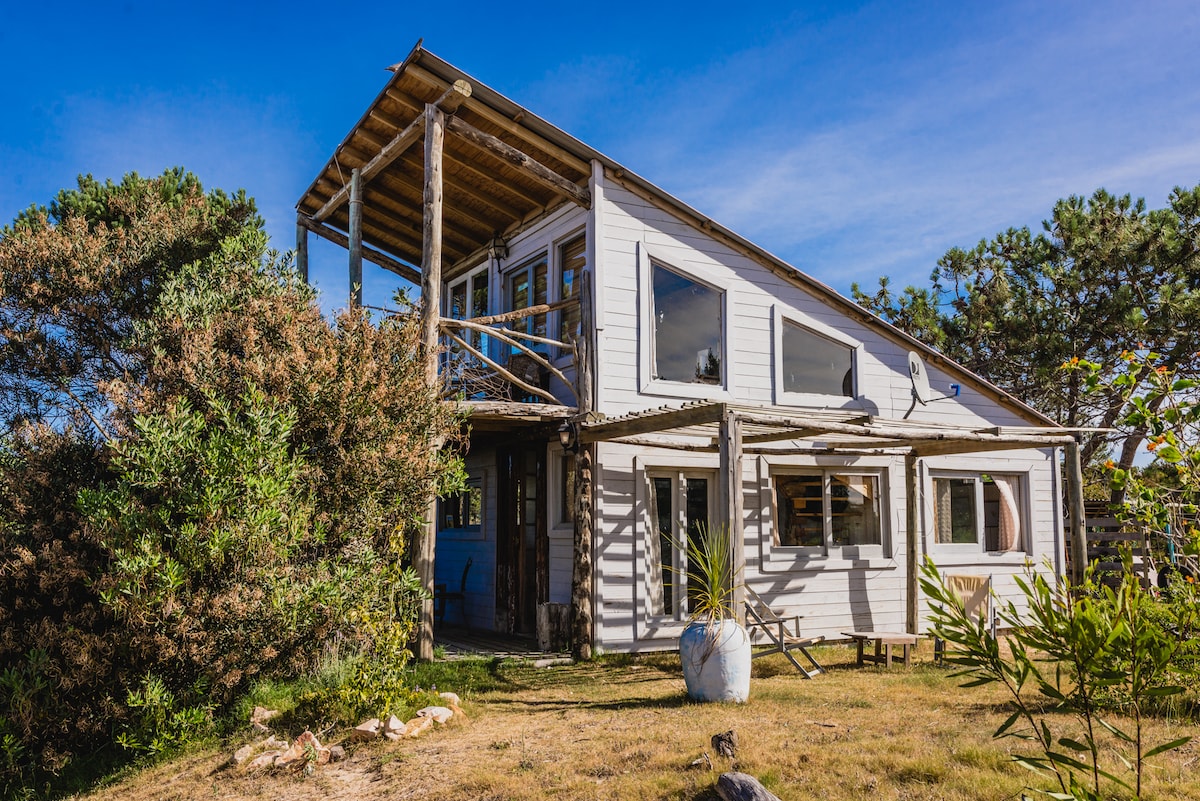Escape to our cabin, a serene retreat just 800 meters from the beach, surrounded by lush greenery, this private rental feels like a hidden wood, offering a tranquil oasis with a beautiful garden. Enjoy the sounds of nature, and experience the perfect blend of seclusion and coastal charm. Our home—fondly called our cabin—is nestled in the peaceful Arenas de José Ignacio, just 800 meters from the ocean, 3 kms from the city (pueblo) , and 6 kms from Laguna Garzón.