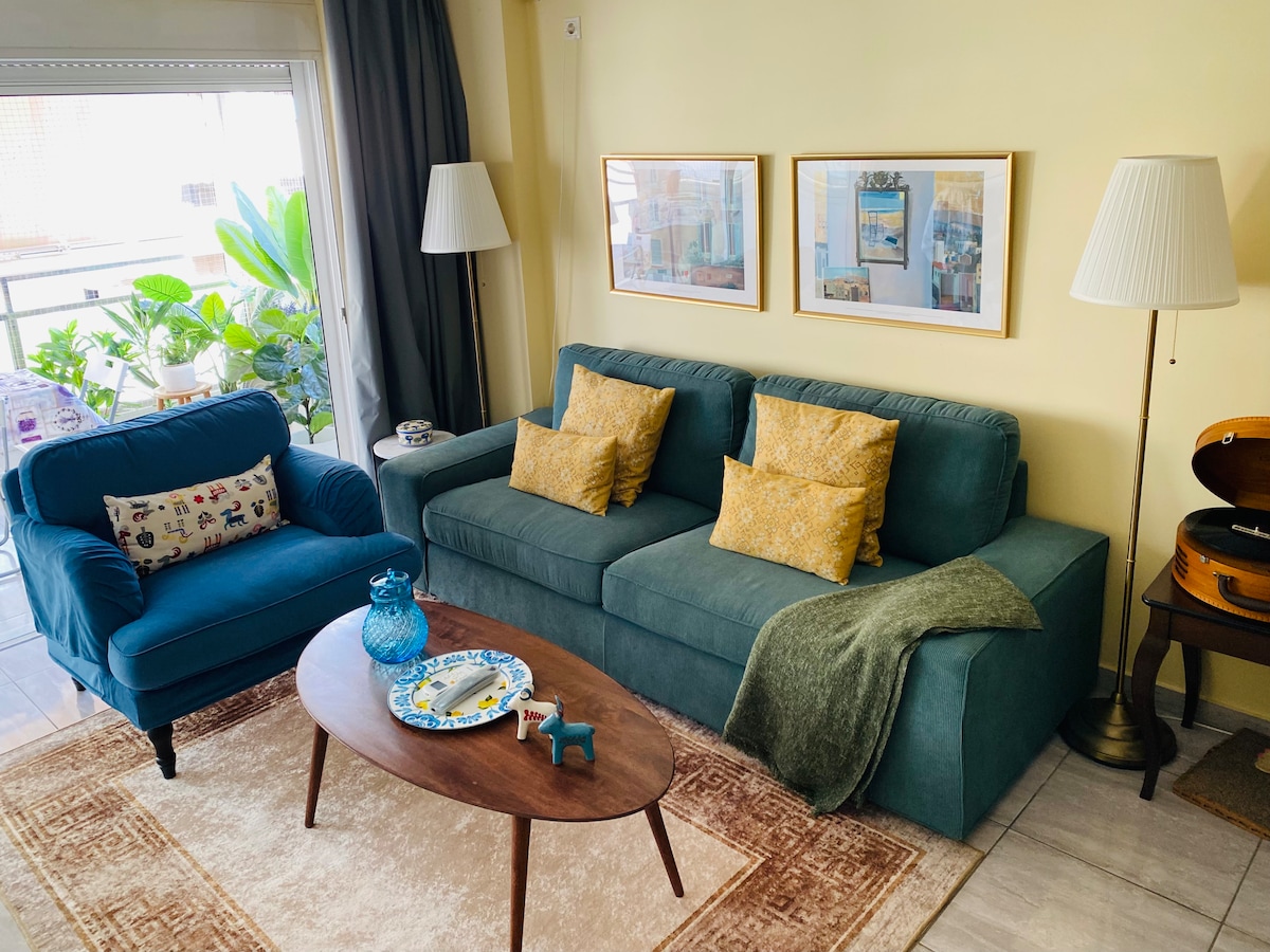 Árasán 1 sheomra leapa lánfheistithe, stad amháin ó Piraeus agus 3 nóiméad ar shiúl go stáisiún traenach Neo Faliro. Tá suíomh foirfe aige chun Riviera na hAithne a iniúchadh. Comhlíonfaidh a throscán agus a threalamh clasaiceach ach só riachtanais laethúla gach aoi. Tá sé laistigh d'achar siúil chuig an Ospidéal Cathrach agus chuig Ionad Cultúrtha Fhondúireacht Stavros Niarchos. Ón mbalcóin is féidir leat taitneamh a bhaint as bricfeasta, caife nó do dheoch síochánta ag breathnú amach ar na crainn.