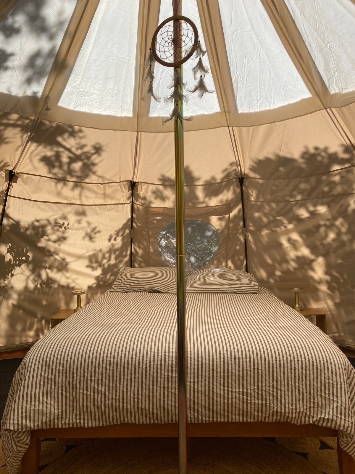 Tearmann glampála—gan aon táillí breise! Tá leaba rí agus seomra folctha lasmuigh i "King's Quarters", suite díreach in aice leis an gcrios, agus deic peirgeola agus seomra cúil príobháideach ina bhfuil tobán te. Bain sult as $450 i bhfeabhsuithe saor in aisce—própán, fuaraitheoir agus oighear, fíon nó kombucha baile, seiceáil isteach/amach luath, peataí agus glanadh, agus go leor eile. NÓTA: Tá Seomraí an Rí geimhrithe don séasúr. Tá an tobán te fós te, ach tá an t-uisce dícheangailte. Cuirfear téitheoirí, blaincéid bhreise agus teirmeas uisce ar fáil duit.