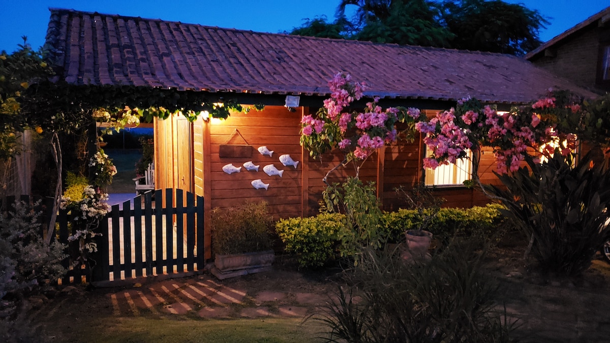 Sealla teolaí aon seomra leapa i ngairdín méith ina bhfuil crainn torthaí agus fiadhúlra áitiúil. Tá cistin bheag, seomra folctha, agus spás maireachtála iontach lasmuigh ann le gríoscán. Roinntear an gairdín le teach amháin eile, an áit a bhfuil cónaí orainn, ach tá go leor spáis ann chun do scíth a ligean agus taitneamh a bhaint as an dúlra. Foirfe do lánúineacha, do shurfálaithe agus do dhaoine a bhfuil dúil acu i bplandaí atá ag lorg saoire shíochánta. Leaba chompordach, atmaisféar socair, agus gar don trá. Labhraímid Béarla, Portaingéilis agus Spáinnis agus táimid sásta cabhrú leat!