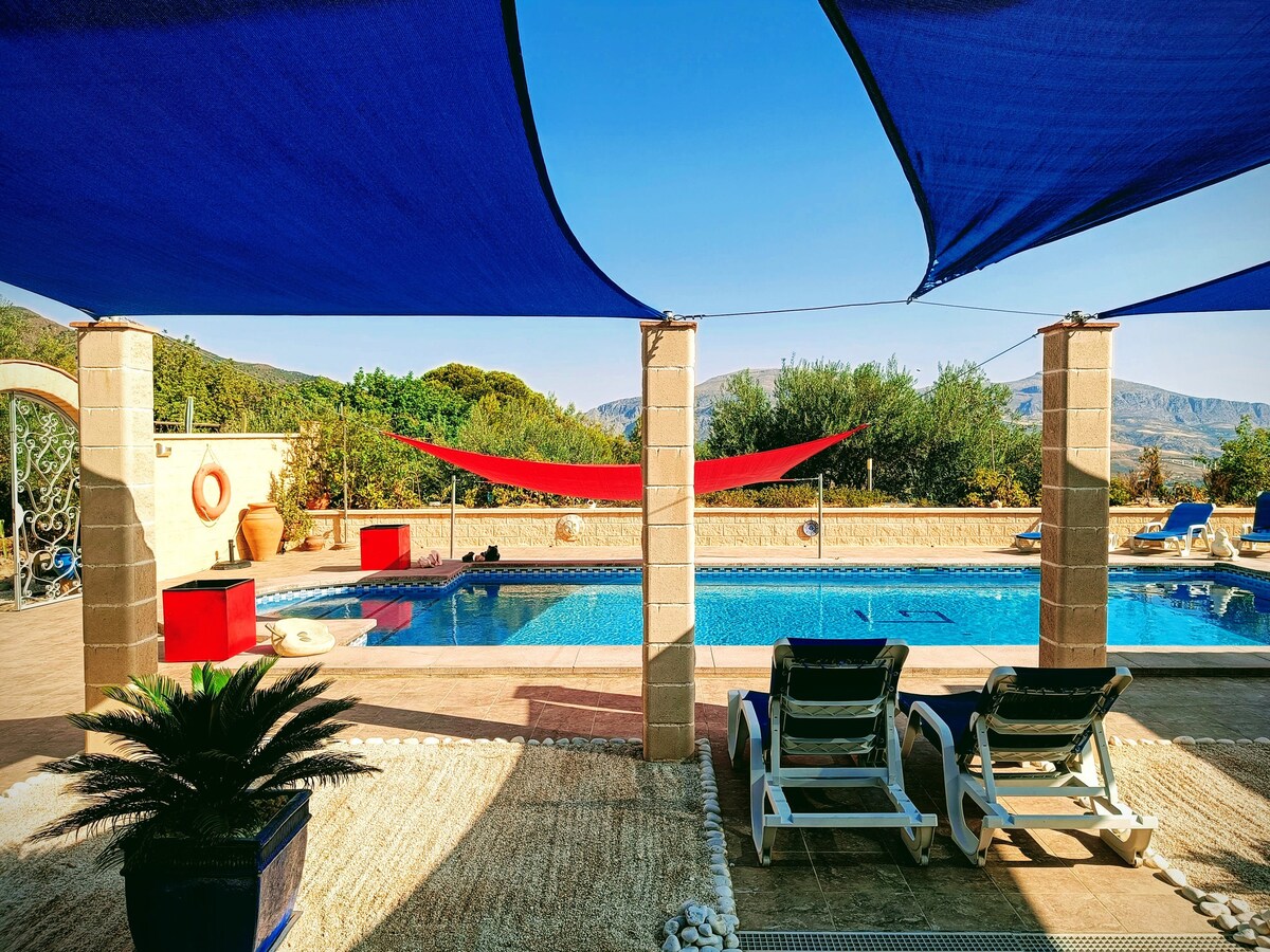Fáilte go dtí an finca eisceachtúil galánta seo i stíl Ibiza. Níl sé oiriúnach do pháistí faoi 14 bliana d'aois. Linn snámha théite (11x5m), go leor scáth i limistéir lasmuigh!! Radhairc gan teorainn ar fud Valle del Sol, radharc eisceachtúil, príobháideacht den scoth, óstach príobháideach, ardán clúdaithe lasmuigh, beárbaiciú mór, páirceáil phríobháideach agus carrphort, geata isteach leictreach. 3 sheomra leapa, gach ceann acu le seomra folctha en suite. Suite ar rian atá oiriúnach do charranna, 6 nóiméad sa charr ó bhaile Alora. Fiú i míonna an gheimhridh, tá an teocht +10° ná teocht oifigiúil.