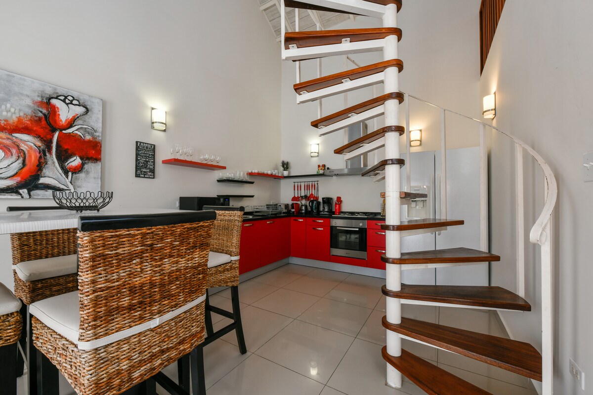 TAIRISCINT SPEISIALTA! 25% denCHLÁR oibre - Fanacht íosta 28 oíche! Ideal do bheith ag obair nó ag staidéar go cianda. Wi - FI tapa agus cobhsaí! Branda nua 2 Leaba/ 1 Árasán Folctha (2ú hurlár) ach cloch a chaitear amach ó Thrá iontach an Iolair. Súigh an ghrian, lig do chosa sa ghaineamh d'aghaidh a bheith timpeallaithe ag an leoithne deas Aruba agus bí réidh freisin le bheith séidte ar shiúl ag an ngrian is ciallmhaire! Áisiúil lonnaithe; 5 nóiméad ag siúl go Superfood agus 3 nóiméad ag siúl go dtí Eagle Beach!