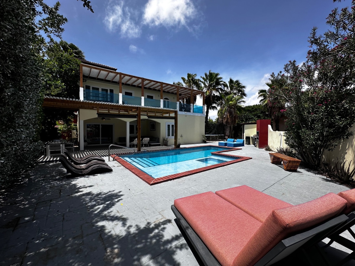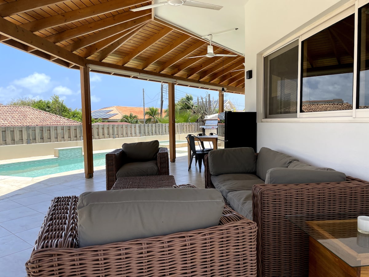 Lig do scíth leis an teaghlach ar fad agus bain taitneamh as gach rud atá le tairiscint in Aruba leis an villa IONTACH seo atá suite níos lú ná nóiméad ón Trá Phailme agus ó Fisherman's Hut is fearr in Aruba! Rinneadh an Villa seo a athchóiriú agus a phéinteáil le déanaí! Tá pictiúir nua ag teacht go luath! Tá linn snámha iontach againn le jabúsaí agus go leor suíochán chun taitneamh a bhaint as! Tá leaba iontach lasmuigh ann freisin ionas gur féidir leat taitneamh a bhaint as na réaltaí go compordach!
