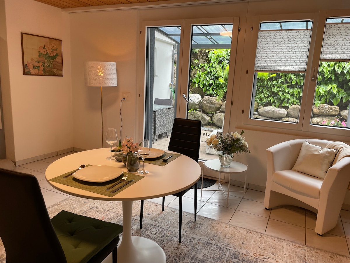 Faigh do shuaimhneas agus athshocraith thú féin in Alpa Glarus. Stiúideo príobháideach, beag, cluthar le sauna príobháideach agus tobán te le haghaidh scíthe (is féidir é a chur in áirithe más mian leat). Foirfe do lánúineacha nó do chuairteoirí aonair. Tá Wi-Fi saor in aisce, Netflix, meaisín caife Nespresso agus dhá rothar leictreach cathrach san áireamh. Níl ach 5 nóiméad go dtí an seoid dúlra Äugsten agus 15 nóiméad go dtí Klöntalersee. Páirceáil díreach os comhair an stiúideo.