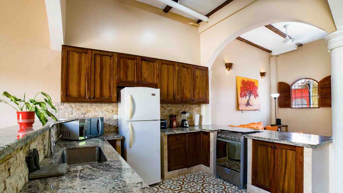 Déan iniúchadh ar Granada coilíneach ó Tesoro Dorado! Níl ach 3 bhloc ó Central Park agus ó Ardeaglais Granada, tá linn snámha lárnach iontach sa teach geal coilíneach seo atá oscailte don spéir. Bain sult as an seomra suí mór, bia cois linne, agus an chistin atá feistithe go hiomlán. Tá A/C agus seomraí folctha príobháideacha i ngach ceann de na 3 sheomra leapa fairsinge. Neart spáis do theaghlaigh mhóra leathadh amach agus taitneamh a bhaint as. Lig do scíth ar an ardán urláir uachtair le bolcán agus radhairc na hArdeaglaise. Achar siúil chuig bialanna agus siamsaíocht oíche Calle la Calzada!