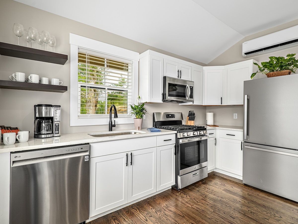 Tá an teach beag bídeach suite i gcomharsanacht álainn Haw Creek, agus é suite sa dúlra ach níl sé ach 5 nóiméad sa charr go dtí an lár. Tá an teach achar siúil go Penny Cup Coffee agus Creekside Taphouse, dhá rogha áitiúla. Tá crainn mhóra agus fiadhúlra fairsing sa chúlchlós agus is féidir iad a fheiceáil trí fhuinneoga an tseomra leapa nó ón bpóirse cúil úrnua. Taobh istigh, tá mothú nua - aimseartha ach tuathúil sa teach beag bídeach. Gheobhaidh tú gach rud atá uait, agus tá cónaí ar d'óstach ar an réadmhaoin agus níl ann ach téacs ar shiúl.