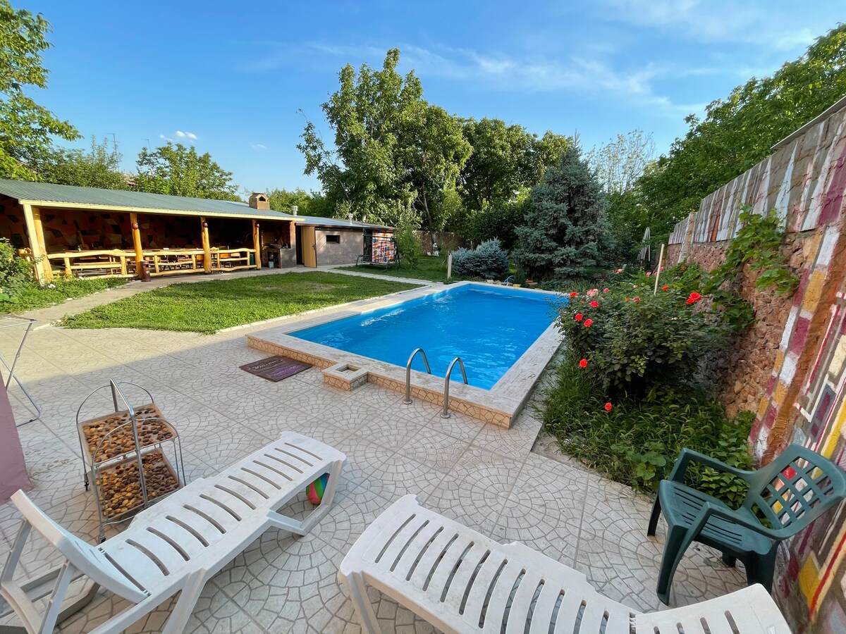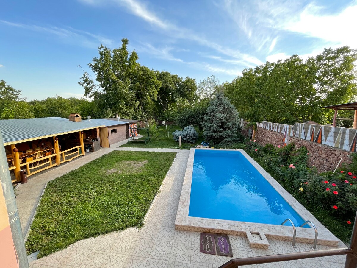 Teach san Airméin le linn snámha, 20 km ó Yerevan