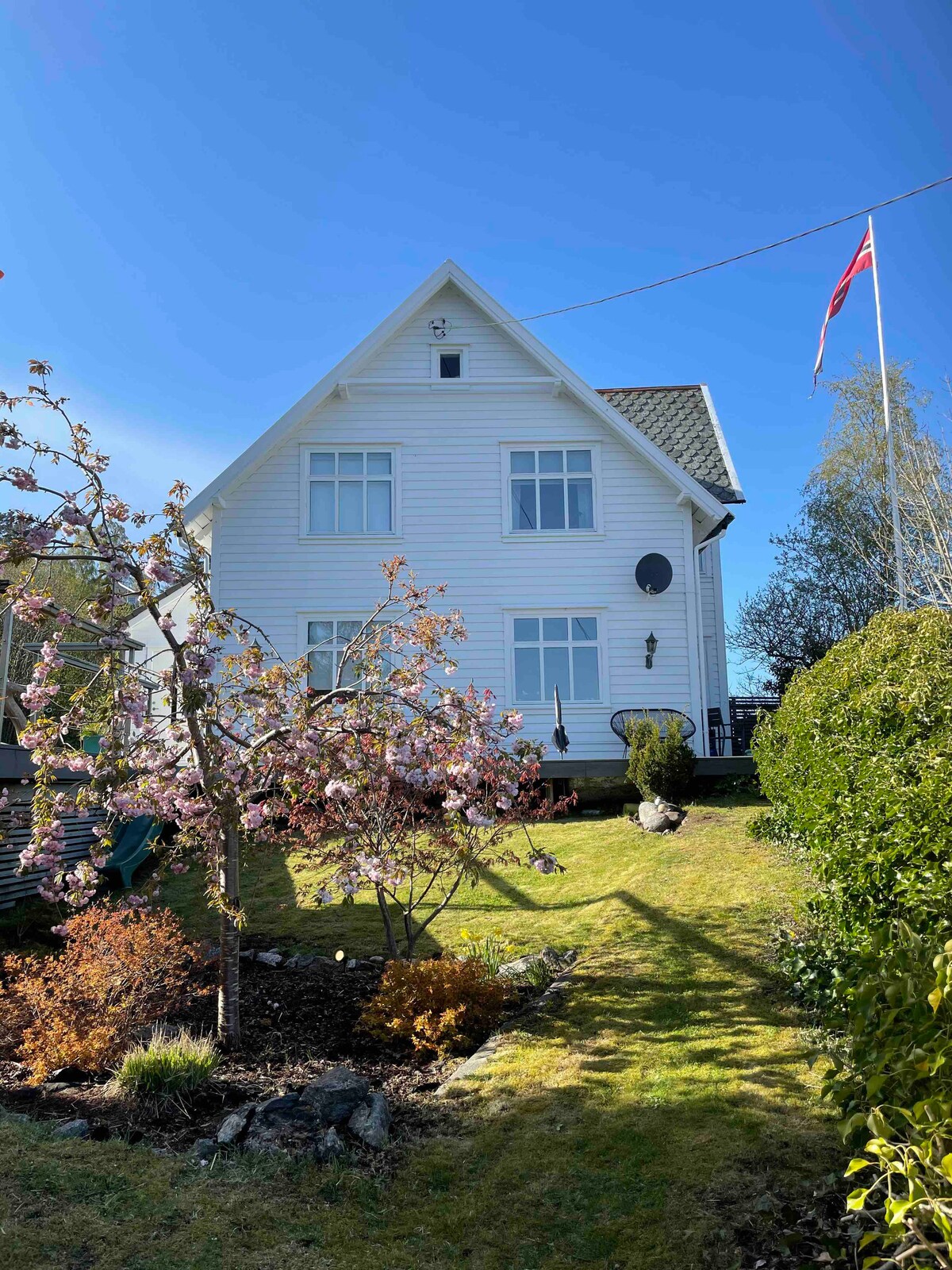 Árasán gairdín deas 3 sheomra leapa in Florvåg ar Askøy. Tá dhá sheomra leapa san árasán (ceann amháin le leaba mhór dhúbailte agus an ceann eile le leaba mhór bhuinc teaghlaigh), seomra folctha le meaisín níocháin agus ciúbán cithfholcadáin, cistin atá feistithe go maith le háit itheacháin agus seomra suí fairsing. Tá an t - árasán suite achar gearr go Kleppestø a bhfuil nasc báid aige go díreach le lár chathair Bergen. Tá stadanna bus achar gearr ón árasán. Siopa áise laistigh d'achar siúil agus deiseanna siúil deasa leis an árasán mar thúsphointe. Tá an bóthar rochtana géar.