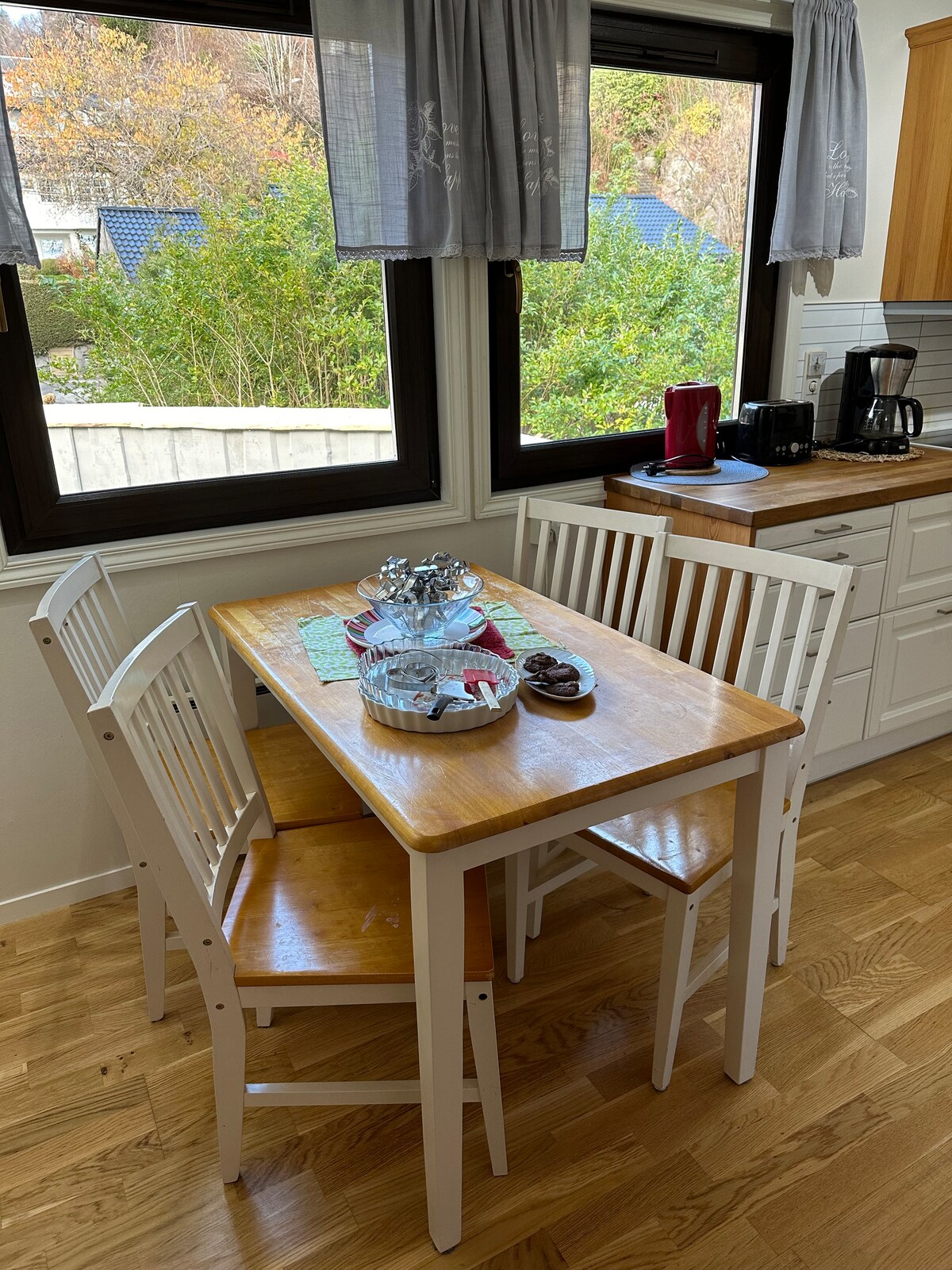 Athluchtaigh do chadhnraí ag an lóistín uathúil suaimhneach seo. Bain sult as radharc na farraige ag bord na cistine, ag an mbord caife, sa seomra suí lasmuigh nó i gceann de na háiteanna iontacha lasmuigh sa ghairdín. Las an teallach ar fud ón gcistin go dtí an seomra suí nó tóg folcadán álainn sa tobán seanfhaiseanta. Tá an teach suite i gceantar síochánta, agus é lárnach. Níl ach 30 nóiméad sa charr go Bergen, agus 10 nóiméad sa charr go lár Knarvik. Fad siúil go dtí an siopa Kiwi is gaire.