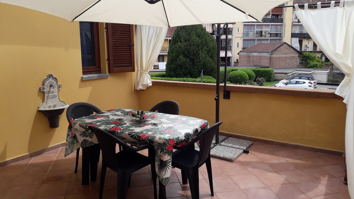 Árasán dhá sheomra 5 nóiméad sa charr ó lár an bhaile, oiriúnach do lánúineacha, d'eachtránaithe aonair agus do thaistealaithe gnó. Timpeallaithe ag suaimhneas agus glaise, ach siúlóid ghearr ó lár an bhaile. Cúpla km ó ionaid turasóireachta ar nós Alba, Torino, leath bealaigh idir an Langhe agus Monferrato.