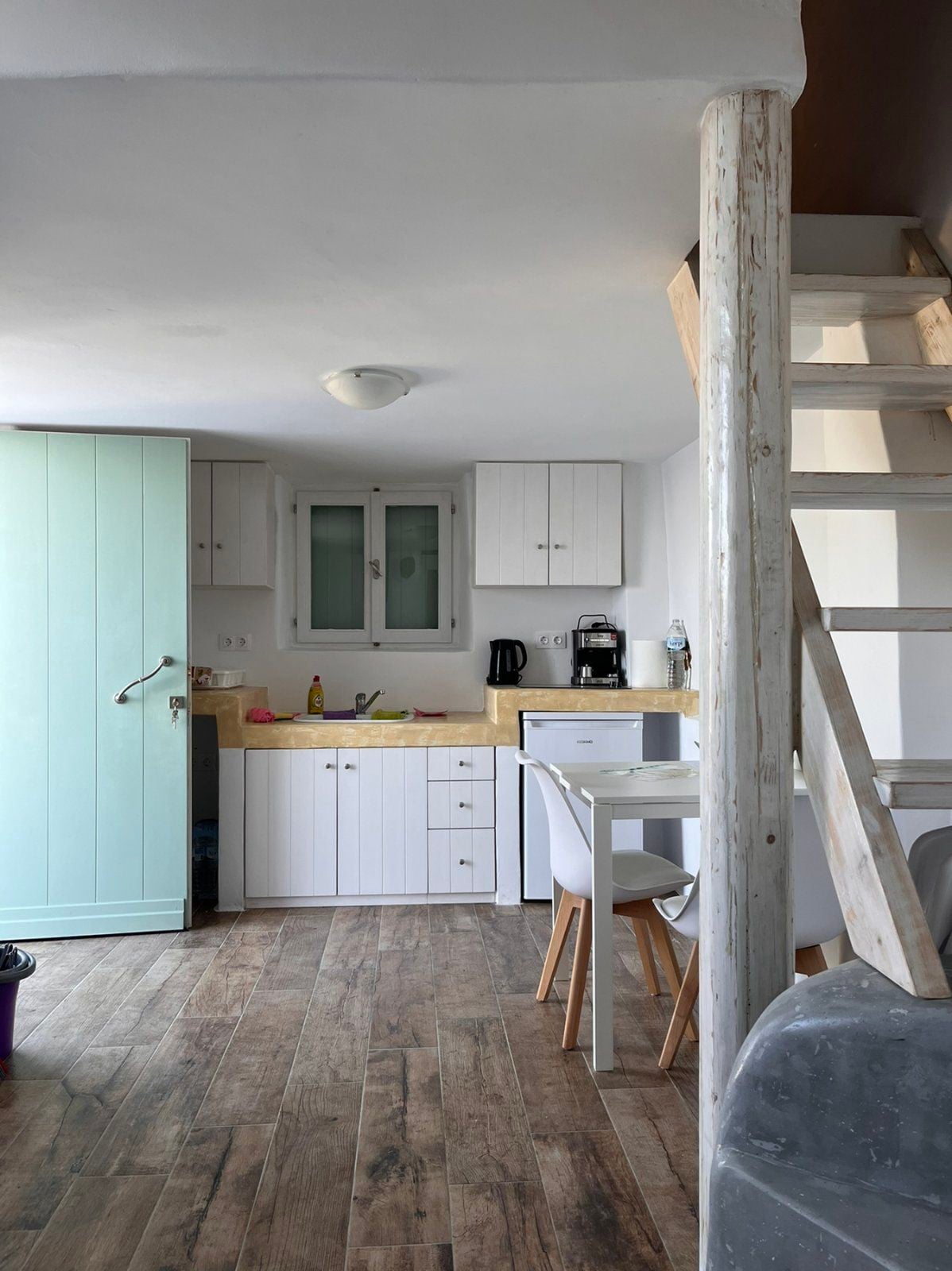Stiúideo compordach le cistin feistithe, seomra folctha agus balcóin phríobháideach. Foirfe do lánúin nó do bheirt chairde ar mian leo a gcuid laethanta saoire a chaitheamh i Astypalea enchanting. Níl sé ach 300m ó Chora agus 10'de shiúl na gcos ón gcalafort. Ar deireadh, faoi fhad siúil tá ollmhargaí, bainc, cógaslann, caiféanna agus bácús.
