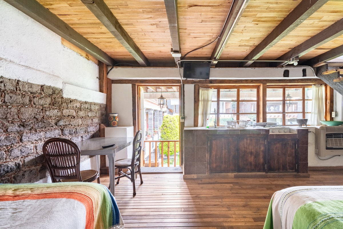 Tógtha taobh istigh de sheanteach, curtha in oiriúint leis na compord go léir, ag caomhnú stíl choilíneach Mheicsiceo, tá sé ag breathnú amach ar an ngairdín ionas gur féidir leat oibriú leis an radharc is fearr. Tá idirlíon ardluais aige.