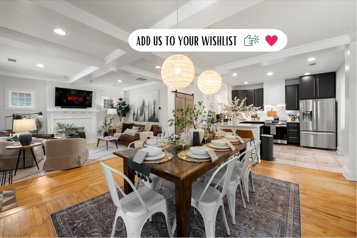 Ullmhaigh le haghaidh fanacht dodhearmadta ag an Dearthóir 5BR Luxury Retreat seo ina bhfuil Cistin Chócaire lánfheistithe, taobh istigh coimeádta, agus saoráidí tuisceanacha le dearadh le Michael Stewart. Céimeanna ó na nithe is díol spéise is fearr in Atlanta, cumascann an teach seo compord, stíl agus suíomh don saoire fhoirfe. - Wi - Fi tapa, leapacha pluaise, caife/tae saor in aisce - Siúl chuig Margadh Cathrach Ponce & BeltLine (bia, ealaín, siamsaíocht oíche) - Céimeanna chuig Staid Mercedes - Benz, Uisceadán, Downtown & Midtown - Nóiméid chuig Aerfort Hartsfield