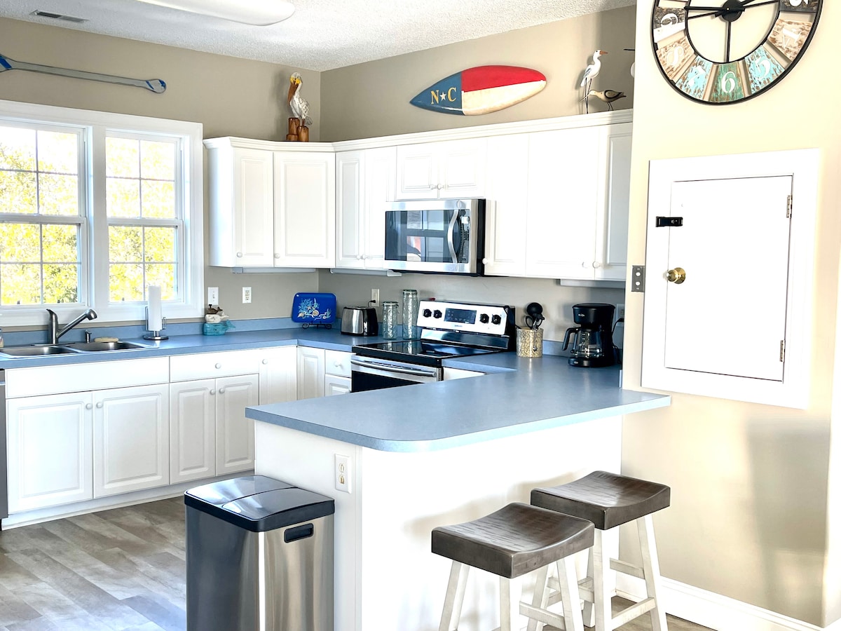 Tá an teach seo atá athchóirithe go hálainn, ATÁ OIRIÚNACH DO PHEATAÍ, lán le saoráidí lena n - áirítear bord linne, stuara, seomra scannáin, deic ollmhór lasmuigh, poll dóiteáin, clós cúil fálaithe, páirceáil bháid, agus rampa bád pobail príobháideach! Go hidéalach, tá sé suite idir Trá an Atlantaigh agus Oileán Iathghlas, tá 13 dhuine ina gcodladh sa teach fairsing seo agus níl ann ach siúlóid ghearr chuig ár n - rochtain phríobháideach ar an trá, Uisceadán an NC, bialanna cois trá, páirceanna, mionghalf, dul - iarnáil, páirceanna uisce, agus go leor eile!