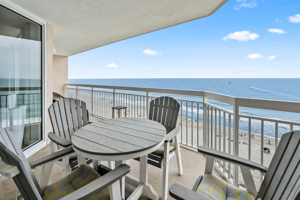 🌊 Déan iniúchadh ar an tsraith 2BR/2BA nua - nuashonraithe seo ina bhfuil radhairc dhíreacha iontacha ar imeall na farraige ó gach seomra. Lonnaithe i gcroílár Thrá Myrtle, tá suas le 10 n - aoi sa seomra fairsing seo, atá foirfe do theaghlaigh nó do ghrúpaí atá ag lorg scíthe agus spraoi Tá balcóiní príobháideacha sa 🌅 dá sheomra leapa agus tá fuinneoga timpeall ón urlár go dtí an tsíleáil sa seomra suí, a thairgeann radharc 360 céim ar chaife iontach✨ Chósta an Atlantaigh ar an mbalcóin agus éist le tonnta le cuimhní spraíúla scíth a ligean agus gan deireadh