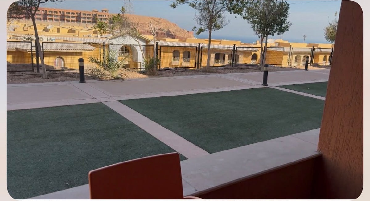 Sealla 2 Sheomra Leapa ag Telal El Sokhna le Trá, Linn Snámha, Gairdín, & Radharc Sléibhe Tá stíl ar fad ag an áit uathúil seo. Ardán ollmhór radhairc ar an bhfarraige le crochadh amach le gairdín beag agus gríoscán beárbaiciú Beidh rochtain agat ar : Tá Tránna & Linnte Iomadúla, Bialann, Ollmhargadh, Cógaslann, & Mosque ar fáil taobh istigh de Telal. - Tá cúirteanna peile, cispheile, leadóige agus eitpheile sa sráidbhaile, agus áit imeartha do pháistí taobh istigh den chlubtheach. ️Ar fáil do Theaghlaigh Amháin ️Ní cheadaítear peataí