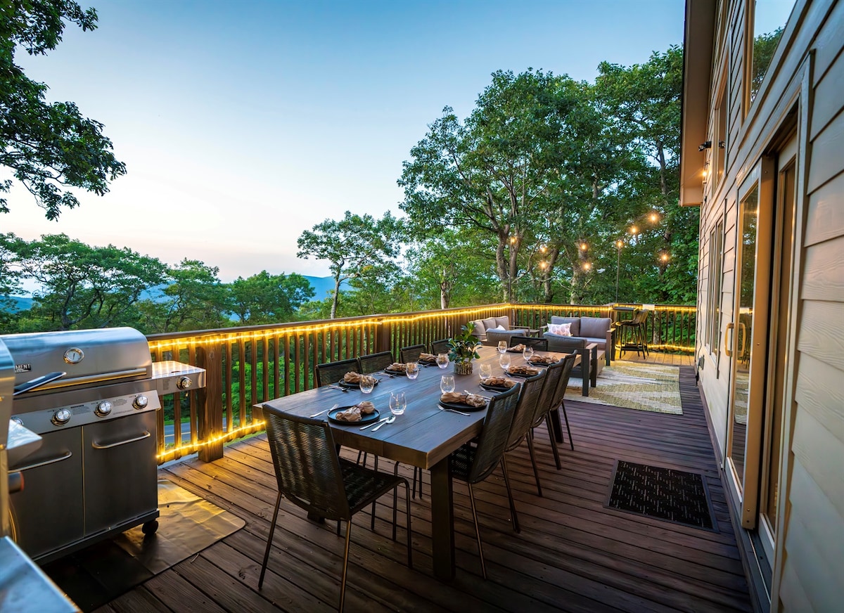 Fáilte chuig Blackrock Escape! Teach sléibhe atá oiriúnach do mhadraí, 2BR/2.5BA sa phríomhshuíomh ag Ionad Saoire Wintergreen. Tiomáint 3 nóiméad go dtí an Mountain Inn. Siúlóid chuig cosáin fánaíochta - níl Cosán Plunge/Páirc na Carraige Duibhe ach siúlóid 2 nóiméad. Dhá BR ar an gcéad urlár - le tochtanna King - size Helix, teilifíseáin chliste, agus seomraí folctha en suite. Teallach dóite adhmaid, cluichí, puzail, teilifíseán cliste 65”sa seomra suí. Dhá dheic w/gríoscán gáis agus tobán te. Keurig K - Duo déantóir caife agus miasniteoir sa chistin. Meaisín níocháin agus triomadóir lánmhéide.