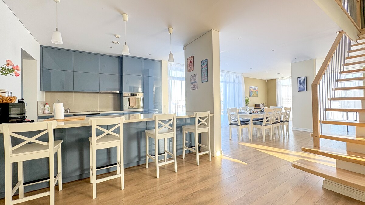 Teach nua-aimseartha, fairsing agus compordach i gceantar Klaipėda. 🏡 5 sheomra leapa ar leith, áit chompordach do theaghlaigh mhóra nó do ghrúpaí; Seomra suí fairsing ceangailte leis an gcistin agus leis an áit itheacháin 🧑🧑🧒🧒 Áiseanna do theaghlaigh le páistí 💻 Áiseanna oibre agus fadtéarmacha: Idirlíon snáthoptaice tapa, le haghaidh cianoibre nó comhoibrithe 📍 Suíomh straitéiseach, lár Chathair Klaipėda - ach 8km ar shiúl ✨ Cinnteoidh an t-áit chónaithe go mbeidh saoire chónaí teaghlaigh compordach ag an gcósta nó réiteach iontaofa do lóistín na bhfostaithe.