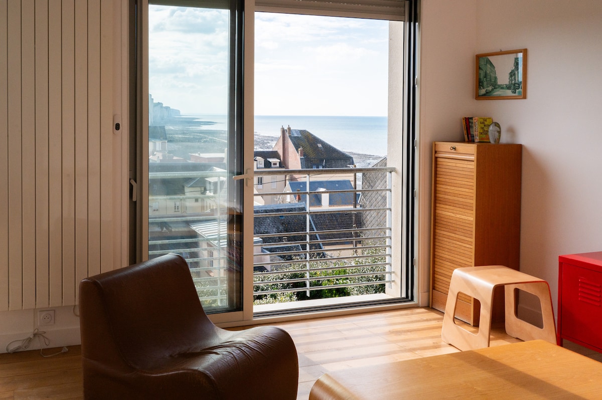 Árasán lánfheistithe, atá suite ar an gcéad urlár de villa deas ag breathnú amach ar an bhfarraige... cuirfidh sé seó ildaite ar fáil duit ag am ar bith den fhanacht ach freisin sa seomra leapa. Radharcra gan sárú!!Go hidéalach suite idir Mers - Le Tréport agus Saint Valéry - Le Crotoy, ligfidh sé duit iniúchadh a dhéanamh ar ár réigiún álainn atá lán de nádúr agus blasanna. Is áit iontach é chun do scíth a ligean le teaghlach nó le cairde.
