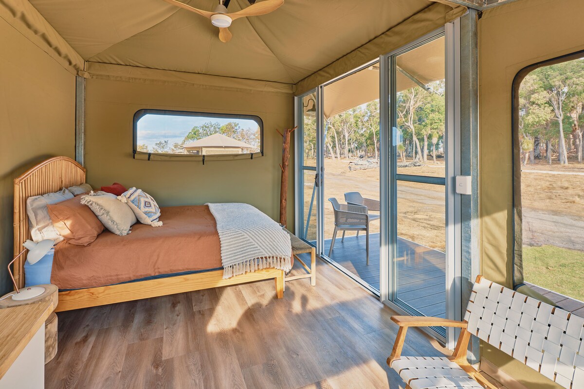 An breá leat an saol amuigh faoin aer, ach níl fonn ort a bheith ag cur fút gan aon chompord? Tá Puball Glampála Bayside deartha dóibh siúd ar mian leo draíocht na campála a bhlaiseadh — gan compord, áisiúlacht ná oíche mhaith chodlata a thabhairt suas. Suite i gcúinne ciúin de Marion Bay, cúpla nóiméad ón trá agus ó Pháirc Náisiúnta Dhilba Guuranda–Innes, tá an tearmann glampála seo do dhaoine fásta amháin foirfe do lánúineacha nó do dhlúthchairde atá ag lorg athshocrú síochánta lán leis an dúlra — agus gach rud réitithe cheana féin.