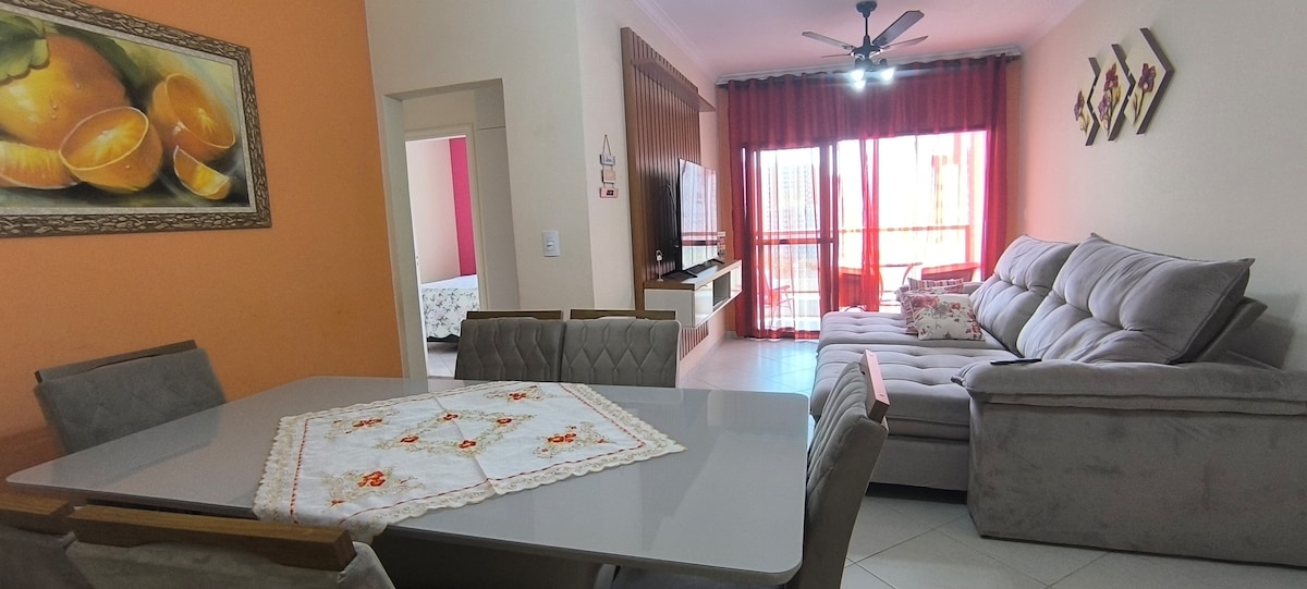Fan leis an teaghlach ar fad san árasán nua fáilteach seo. Le bailchríoch agus struchtúr den scoth, tá an lóistín 100 méadar ó Canto do Forte Beach. Le páirceáil, slándáil agus concierge 24 HS, gar d'ollmhargaí, bialann, pizzeria srl. Tá 2 sheomra leapa ina svuít. Aerchóiriú i ngach timpeallacht. Balcóin le radharc lánléargais ar an bhfarraige. Le cistin iomlán le troscán agus trealamh. Teilifís 65"le Netflix, Disney agus Wi - Fi. Cosc ar thobac taobh istigh d'Edif.