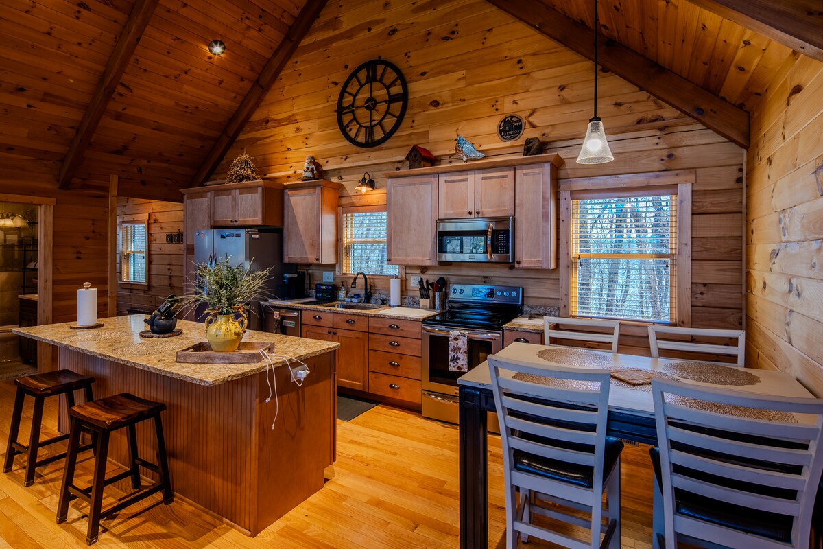 Foirfe do Thearmann Teaghlaigh Phríobháideach Te, le príobháideacht don tobán te. Féach ar an mBóthar na Bó Finne san oíche nó ar Luí Gréine ón tobán te. Agus go leor Spáis ann le haghaidh saoire do Theaghlach*Cairde! Nóta: Tá mapaí corrach ó bhí an hairicín ann, táimid 2.5 mhíle ó 184 in Banner Elk, 8 nóiméad go bialanna iontacha! Tosaíonn d'eispéireas uathúil tearmainn anseo! RADHARC sléibhe Ó CHEANN CEANN na bliana Tobán Te PRÍOBHÁIDEACH SAUNA Seomra Cluichí ar Leithligh le Bartop agus Sliotáin Firepit Leapacha compordacha Áiteanna iomadúla suí deice Seomra Spá