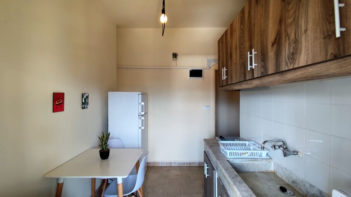 Saoire ghearr theolaí lán troscáin dhá sheomra leapa duit féin agus do do chairde agus/nó do do theaghlach. Tá an t - árasán suite go háisiúil i gcroílár Broummana, áit a bhfuil tú ceangailte le hionad Broummana (mol áitiúil le haghaidh oícheanta spraíúla, caiféanna agus bialanna, ollmhargaí, srl.). Is áit mholta é freisin do dhaoine a bhfuil dúil acu sa dúlra agus a thaitníonn radharcra glasa agus sléibhtiúla, úire agus siúlóidí leo. P.s. Níl sé faoi mhíchumas san áireamh Tá an leictreachas neamhréireach mar gheall ar fhadhbanna an lae inniu ar fud na tíre
