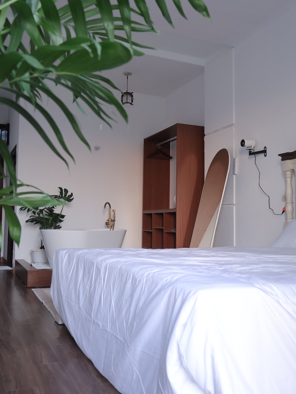 Árasán mór 1 sheomra leapa le stíl nua-aimseartha Indochine, meascán fíorálainn de theagmháil na hÁise Thoir agus anáil shómasach na hEorpa. Tá an spás fairsing, deartha go foirfe le 2 theilifís ar leith sa seomra suí agus sa seomra leapa. Tá an seomra folctha suntasach mar go bhfuil tobán folctha mór ann, atá foirfe le haghaidh scíth phríobháideach. Cruthaíonn soilsiú te le troscán adhmaid agus dathanna neodracha mothú galánta, cluthar spreagúil
